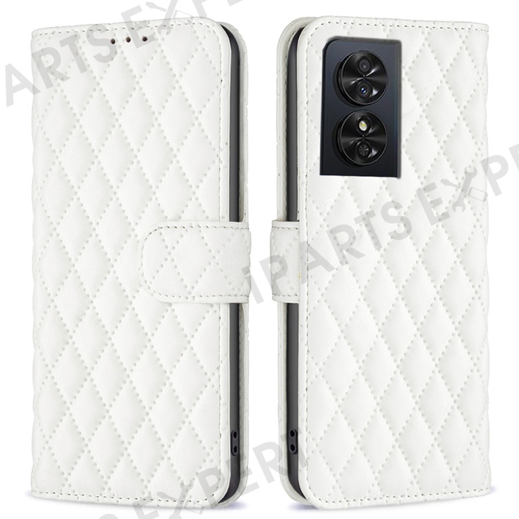 BINFEN COLOR BF Style-14 For TCL 50 SE Wallet Case Rhombus Grid PU Leather Phone Cover - White