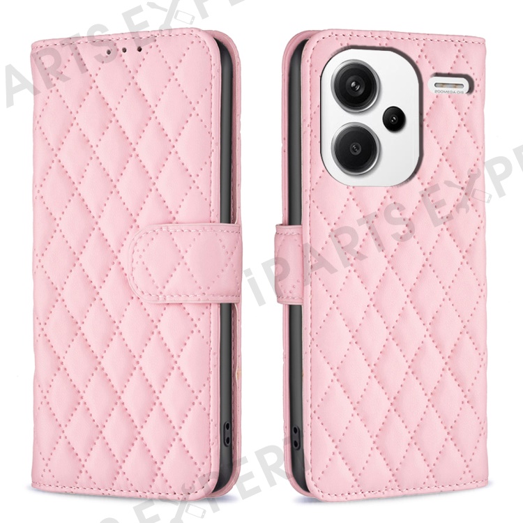 BINFEN COLOR BF Style-14 For Xiaomi Redmi Note 13 Pro+ 5G Case Leather Rhombus Phone Cover - Pink