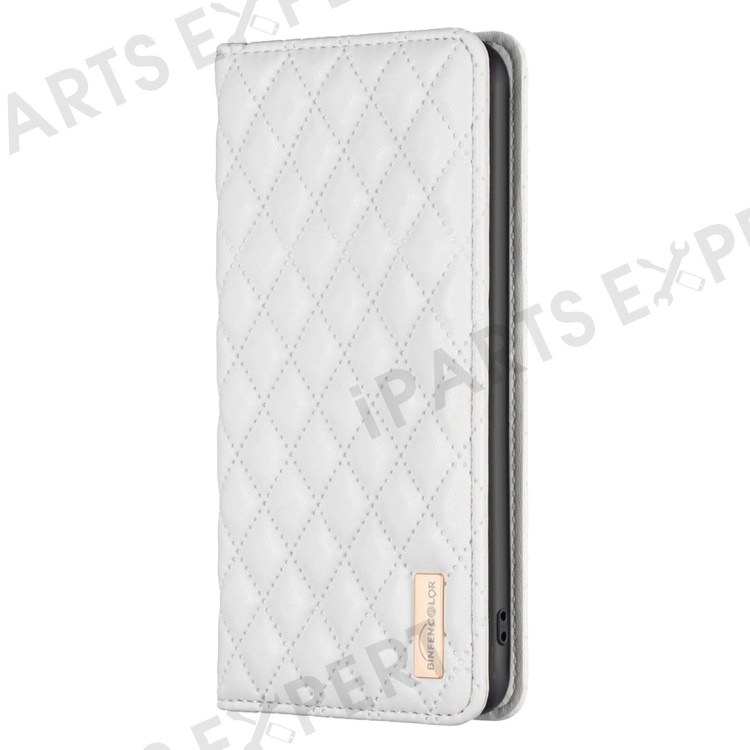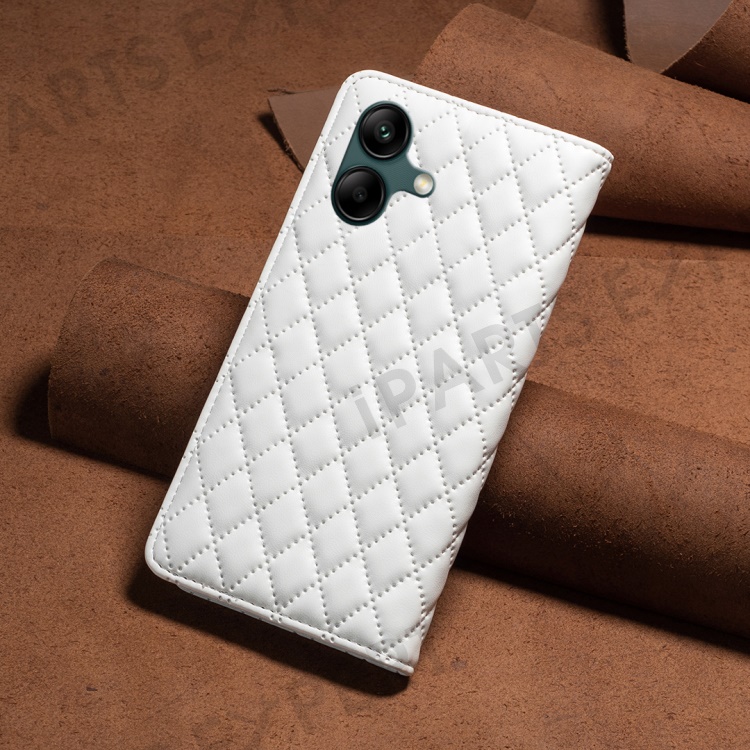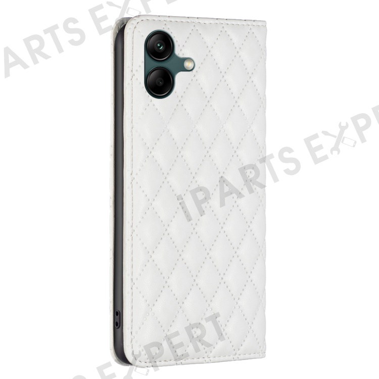 BINFEN COLOR BF Style-16 For Samsung Galaxy A06 4G Case Card Slots Rhombus Leather Cover - White