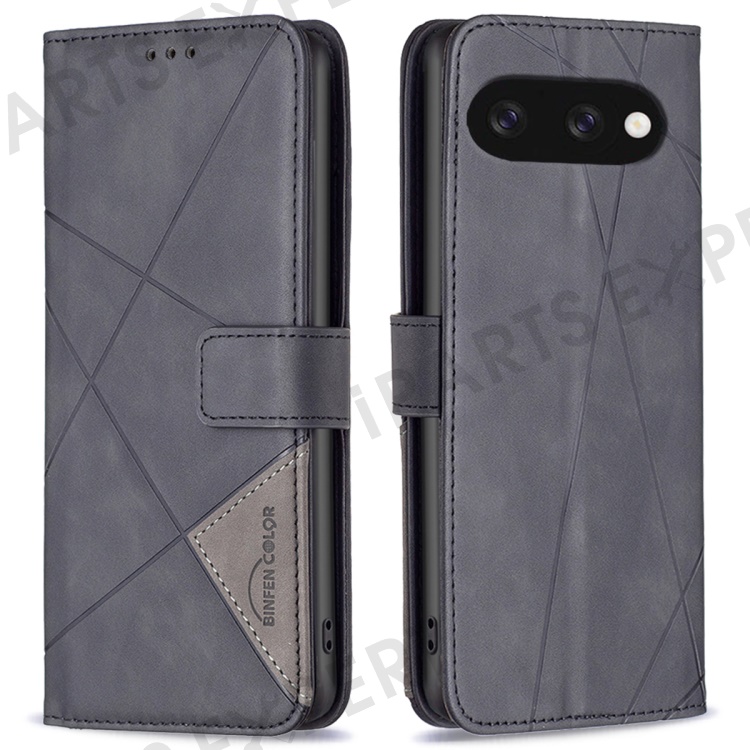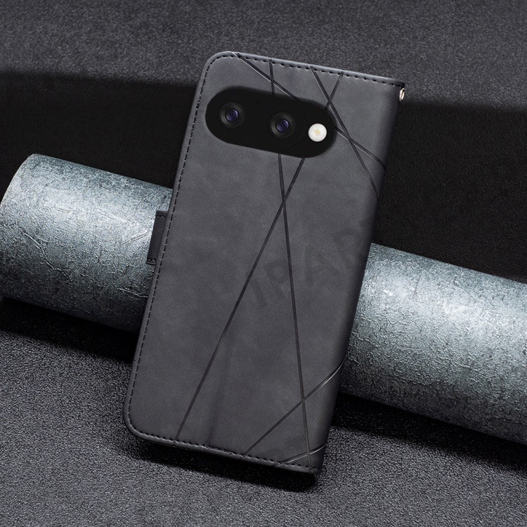 BINFEN COLOR For Google Pixel 9a Phone Cases Wallet Stand Geometry Imprint Leather Cover - Black
