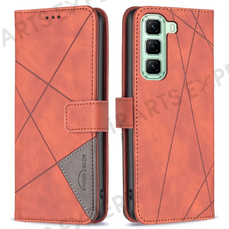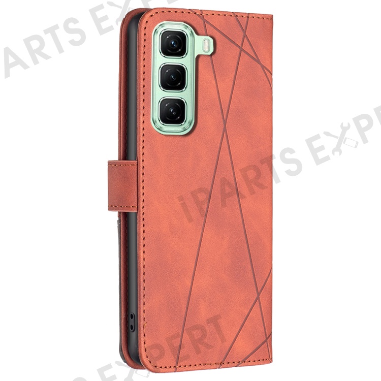 BINFEN COLOR For Infinix Hot 50 4G Phone Cases Wallet Stand Geometry Imprint Leather Cover - Brown