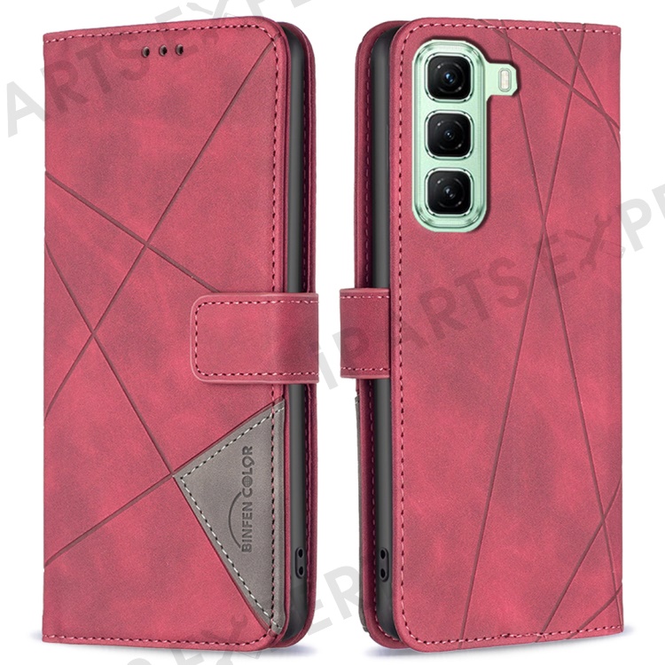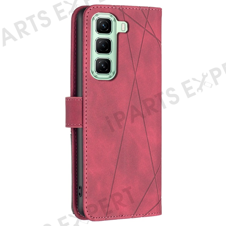 BINFEN COLOR For Infinix Hot 50 4G Phone Cases Wallet Stand Geometry Imprint Leather Cover - Red