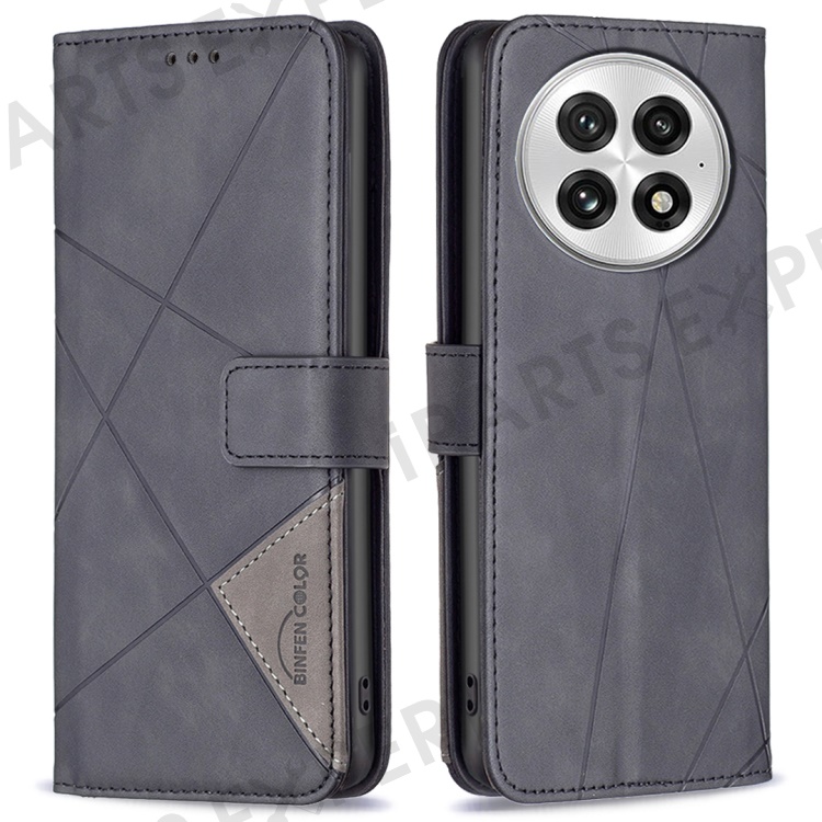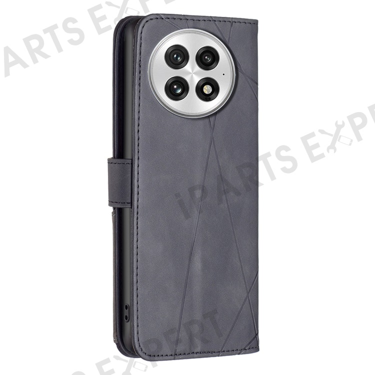 BINFEN COLOR For OnePlus 13 Phone Cases Wallet Stand Geometry Imprint Leather Cover - Black