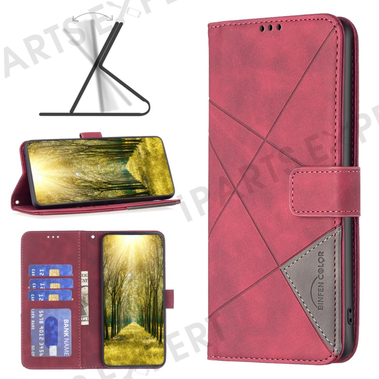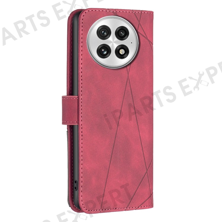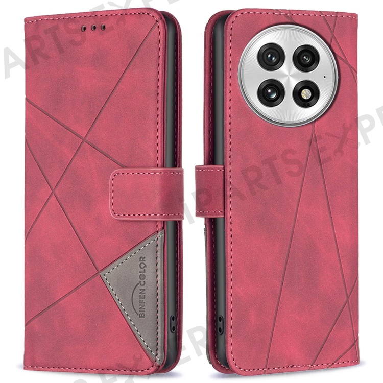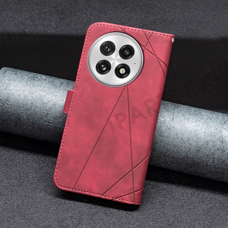 BINFEN COLOR For OnePlus 13 Phone Cases Wallet Stand Geometry Imprint Leather Cover - Red