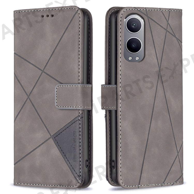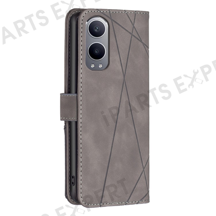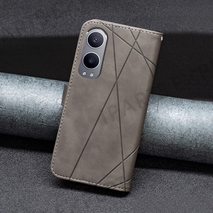 BINFEN COLOR For OnePlus Nord CE4 Lite 5G / Oppo K12x 5G (China) Phone Cases Wallet Stand Geometry Imprint Leather Cover - Grey