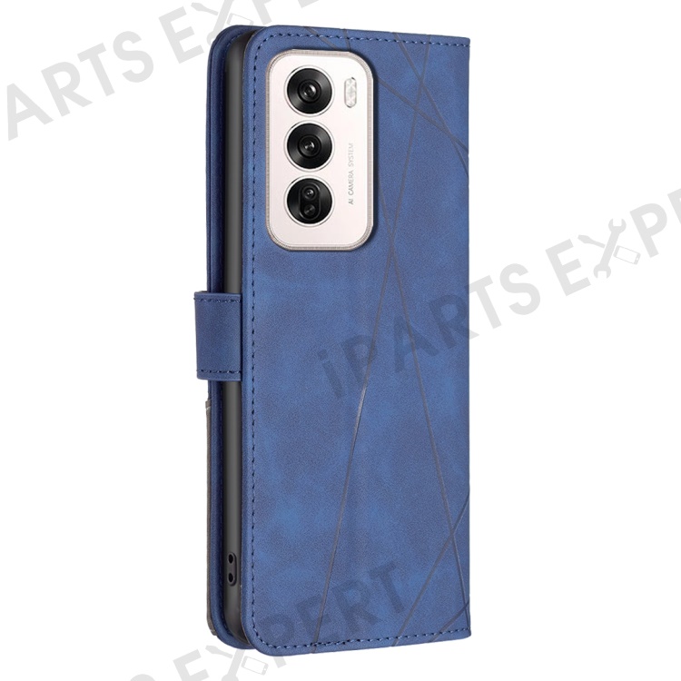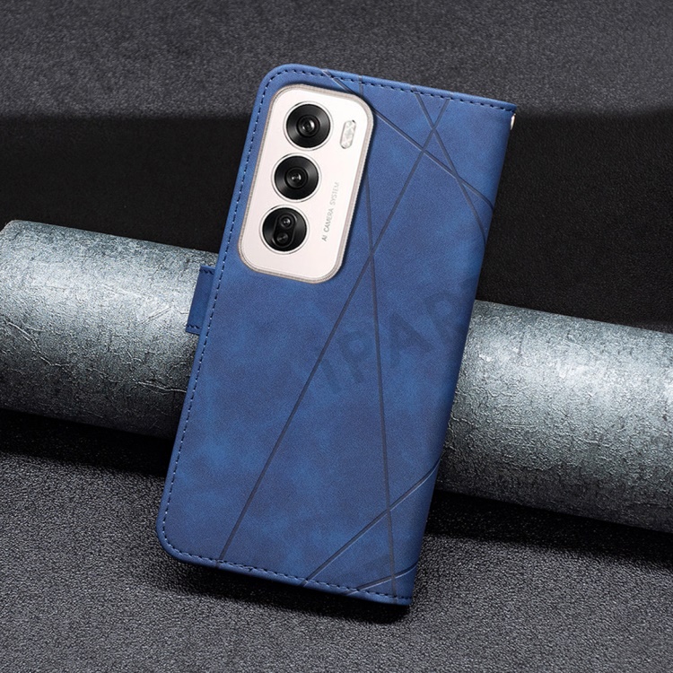 BINFEN COLOR For Oppo Reno12 5G (Global) Phone Cases Wallet Stand Geometry Imprint Leather Cover - Blue