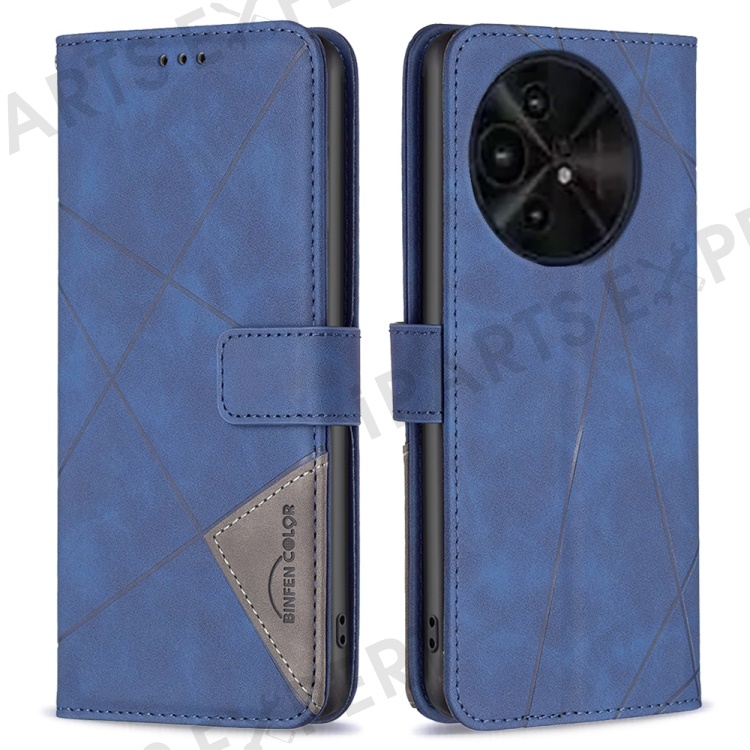 BINFEN COLOR For TCL 50 XL 5G Phone Cases Wallet Stand Geometry Imprint Leather Cover - Blue
