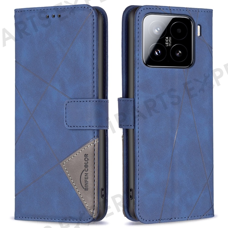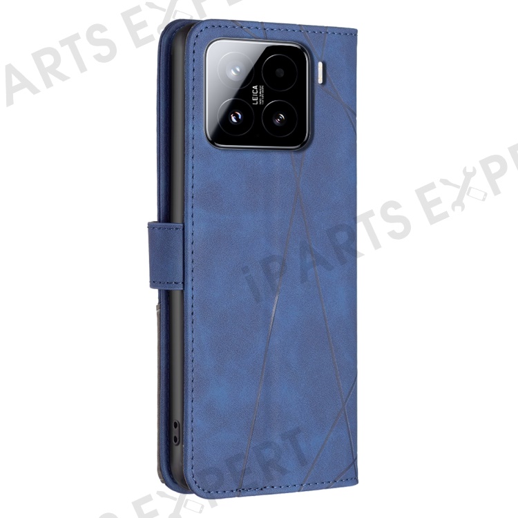 BINFEN COLOR For Xiaomi 15 Phone Cases Wallet Stand Geometry Imprint Leather Cover - Blue