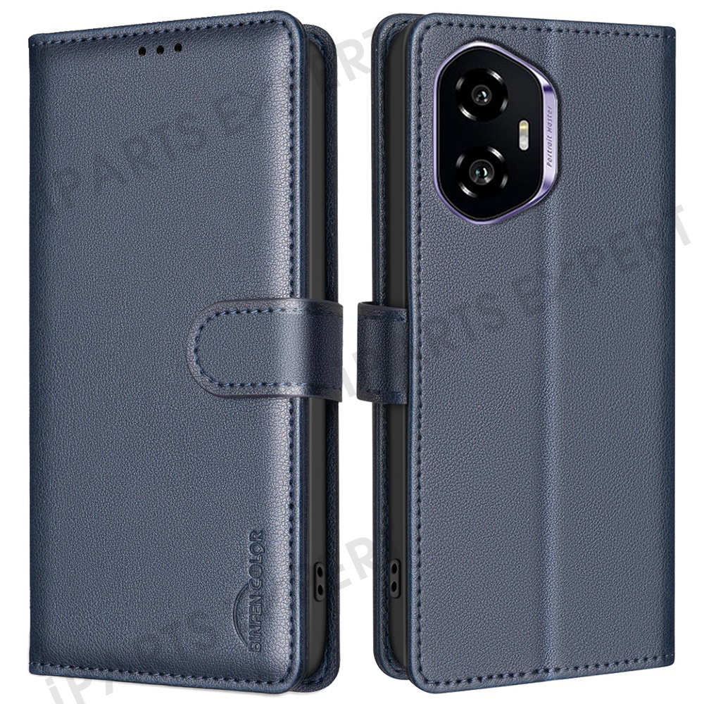 BINFEN COLOR BF32 For Honor 300 Leather Case Wallet RFID Blocking Phone Cover - Blue