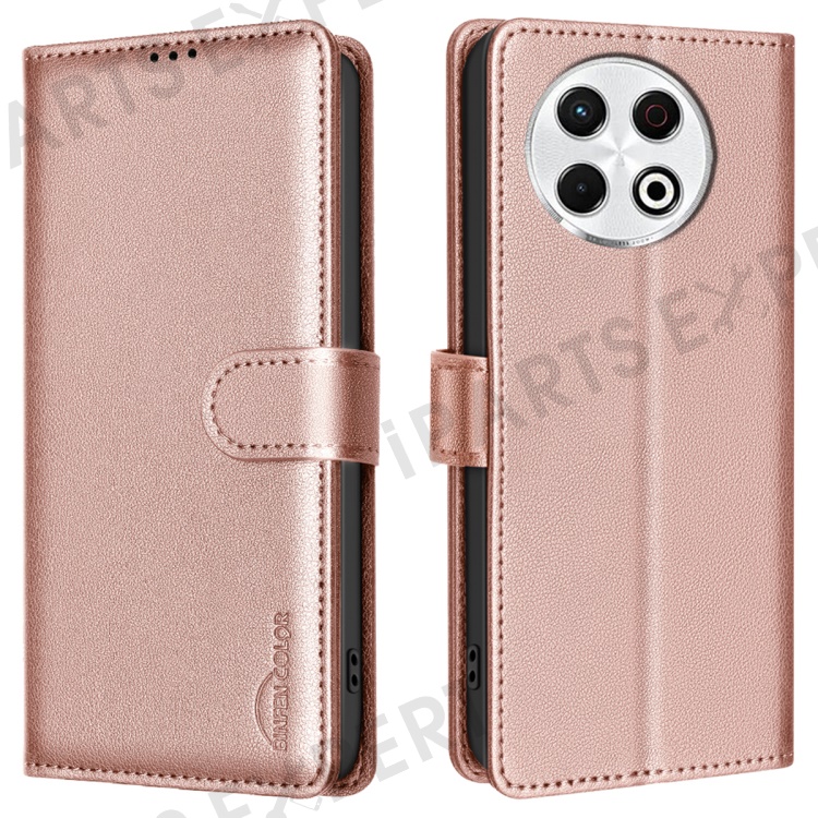 BINFEN COLOR BF32 For TECNO Spark 30 Pro 4G Leather Case Wallet RFID Blocking Phone Cover - Rose Gold
