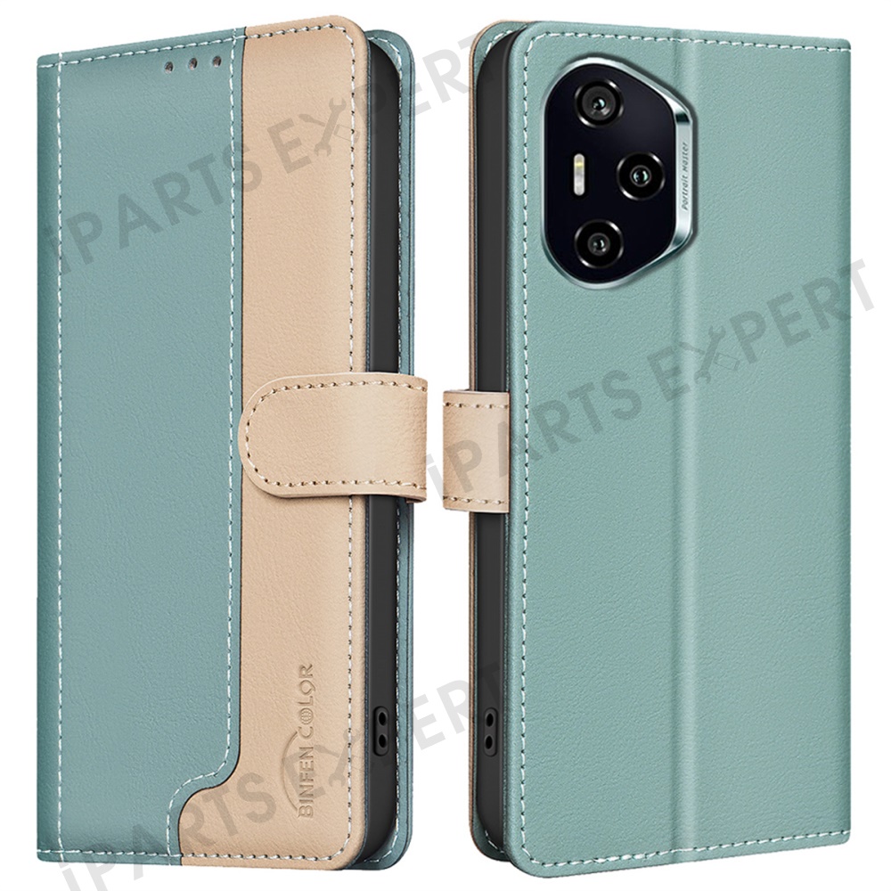 BINFEN COLOR BF33 for Honor 300 Pro / 300 Ultra Leather Case Splicing Color RFID Blocking - Green