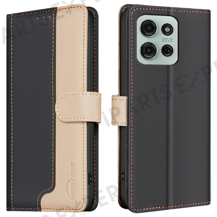BINFEN COLOR BF33 for Motorola Moto G75 5G Leather Case Splicing Color RFID Blocking - Black