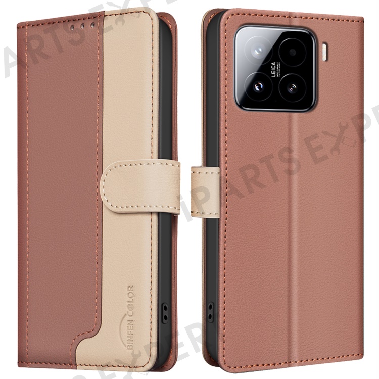 BINFEN COLOR BF33 for Xiaomi 15 Leather Case Splicing Color RFID Blocking - Brown