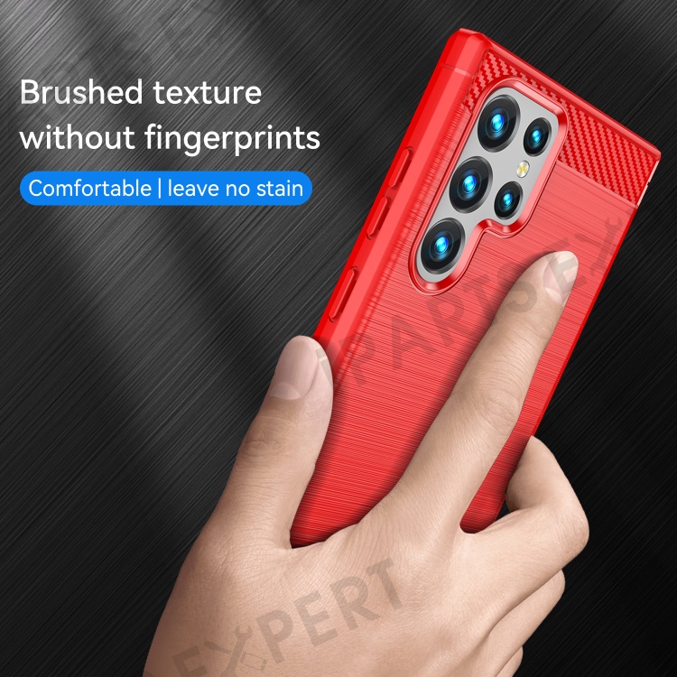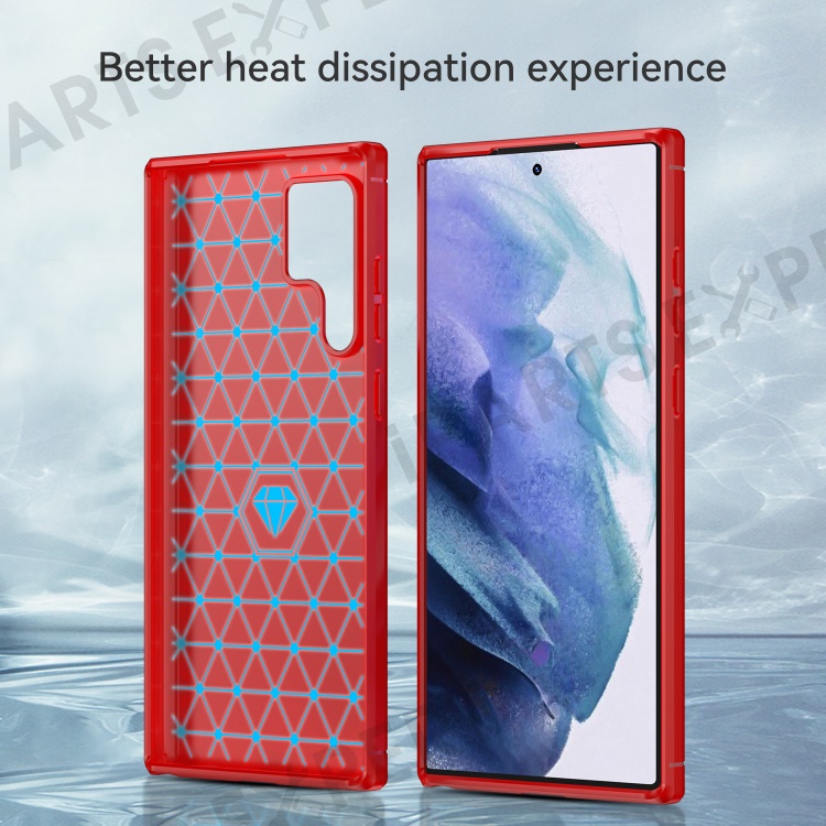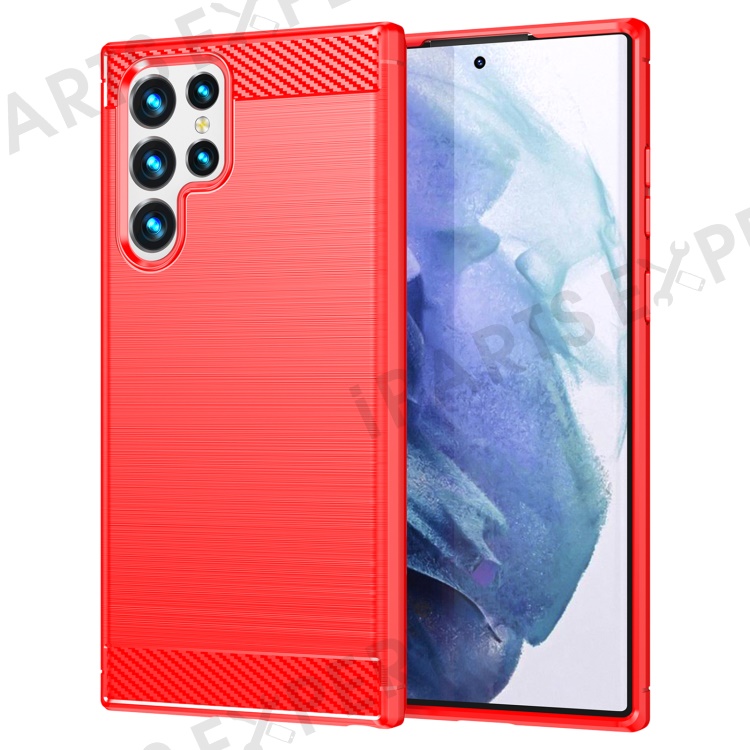 Brushed Surface TPU Case 1.8mm Ultra Thin Heat-Dissipated Carbon Fiber Texture Phone Protective Cover for Samsung Galaxy S22 Ultra 5G - Red