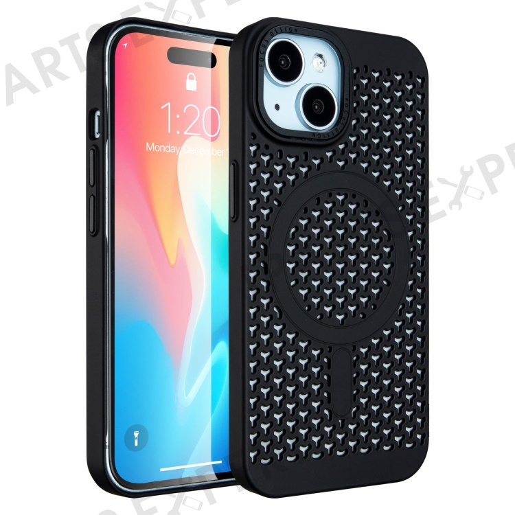 Bulk Purchasing For iPhone 15 Plus Magnetic Case Heat Dissipation PC+TPU Phone Cover - Black