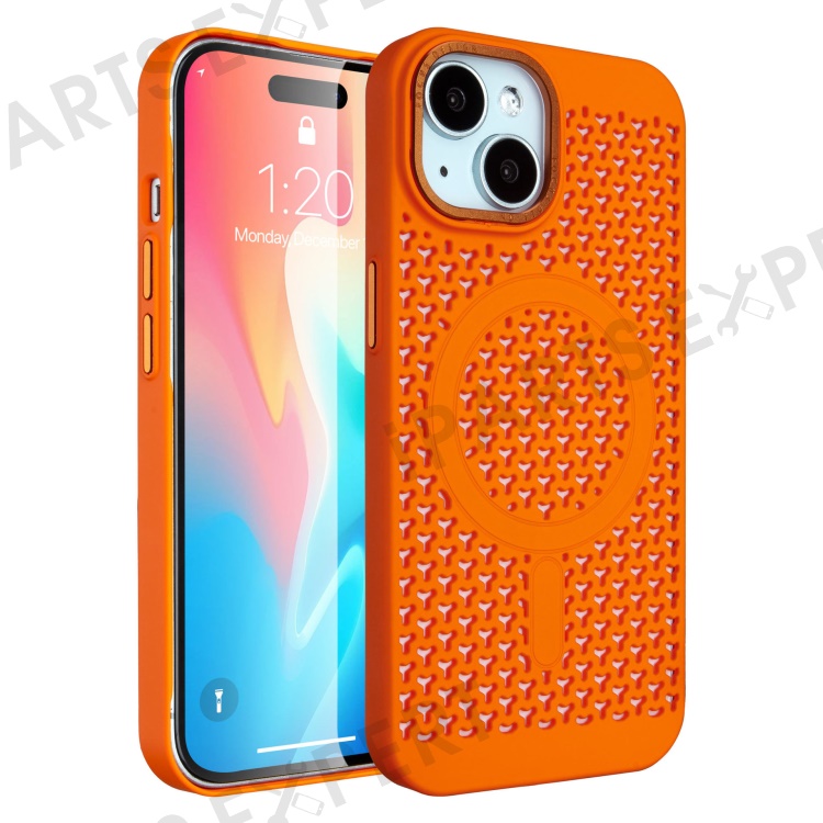 Bulk Purchasing For iPhone 15 Plus Magnetic Case Heat Dissipation PC+TPU Phone Cover - Orange