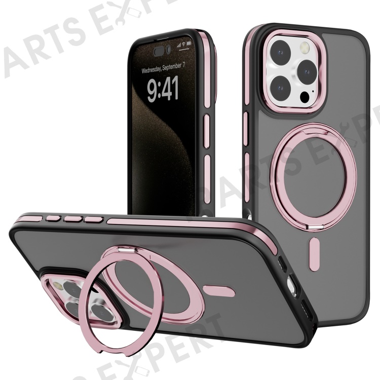 C1 Series For iPhone 16 Pro Case Matte Translucent Back TPU+PC Phone Cover Rotatable Magnetic Kickstand - Pink