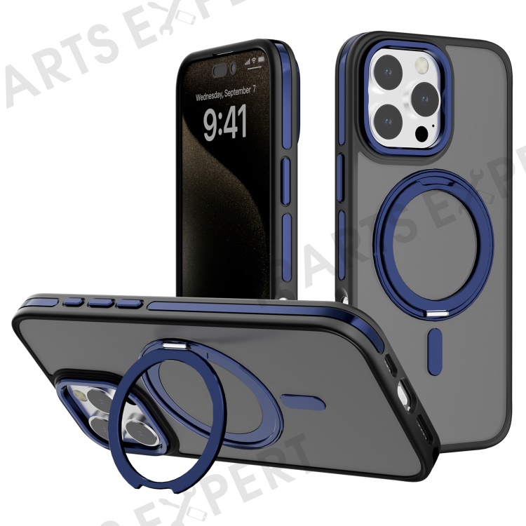 C1 Series For iPhone 16 Pro Case Matte Translucent Back TPU+PC Phone Cover Rotatable Magnetic Kickstand - Sapphire