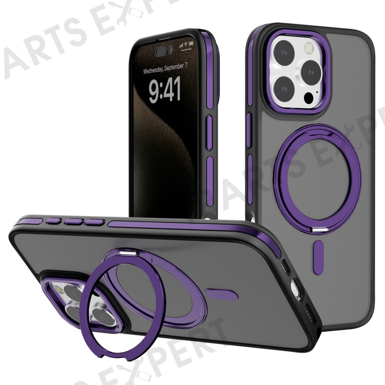 C1 Series For iPhone 16 Pro Max Case Compatible with MagSafe Rotation Kickstand TPU+PC Phone Cover - Dark Purple