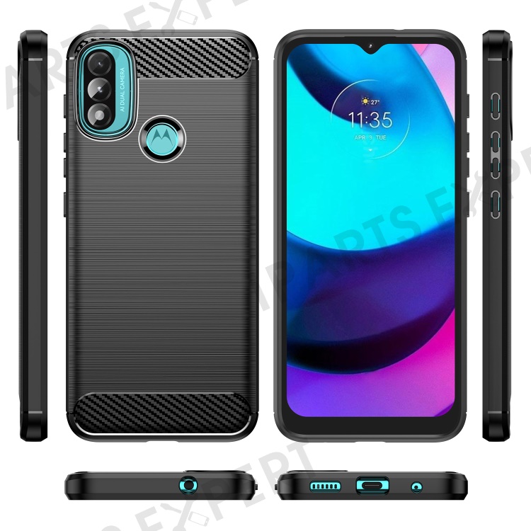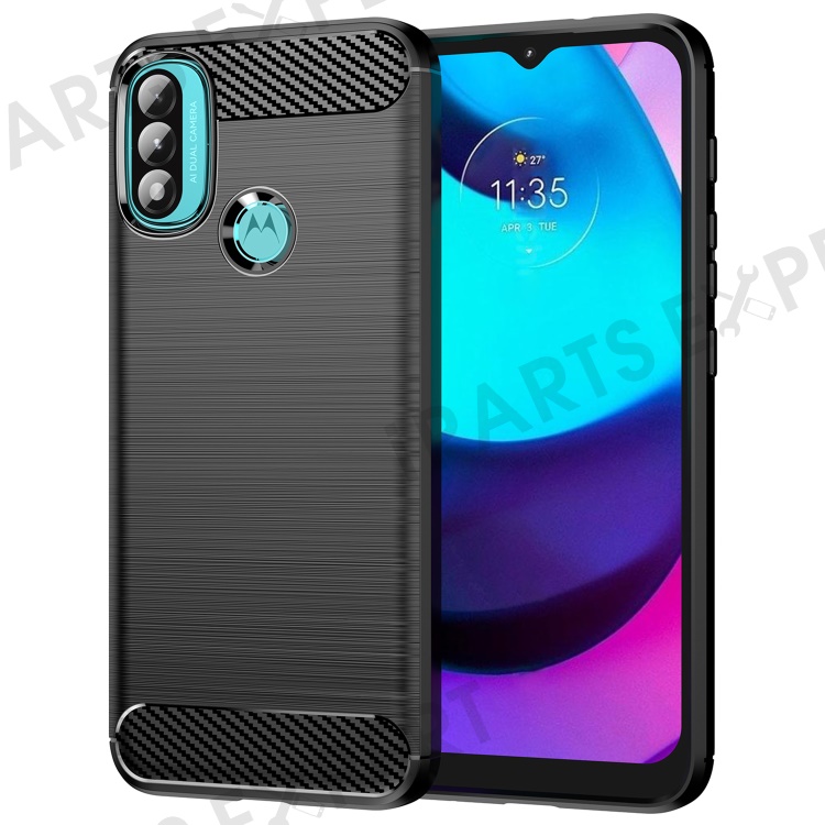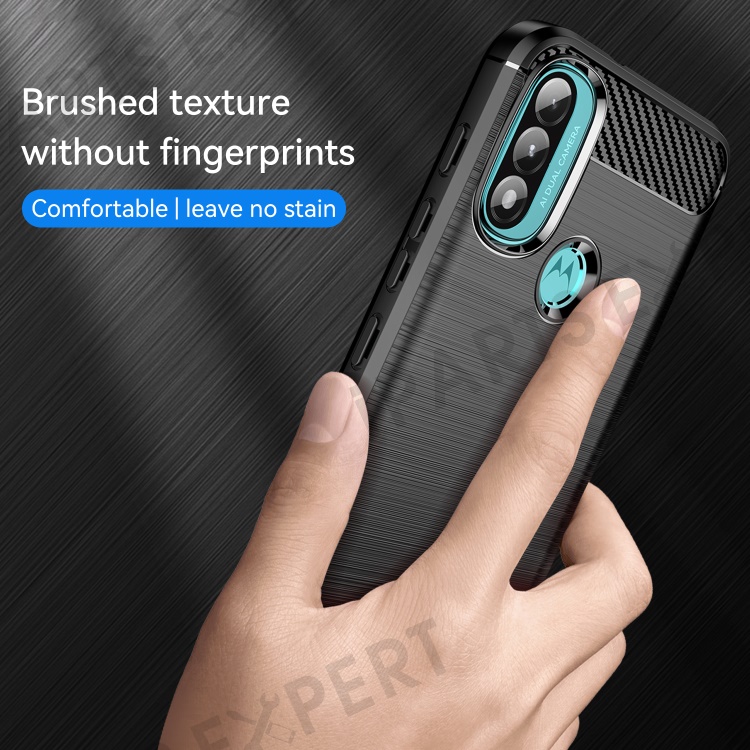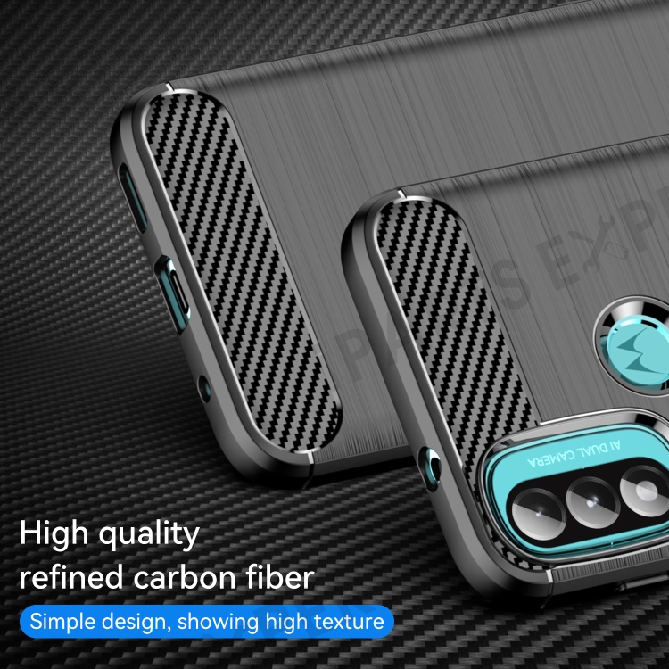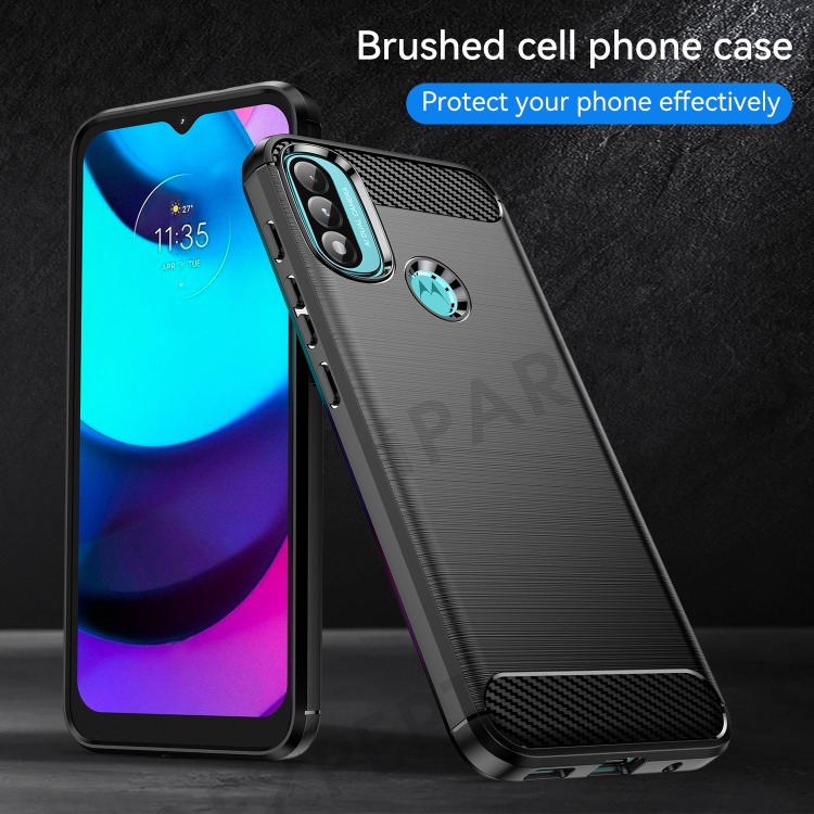 1.8mm Carbon Fiber Texture Brushed Surface TPU Case Air Bag Buffering Super Flexible Phone Cover for Motorola Moto E40/E30/E20 - Black