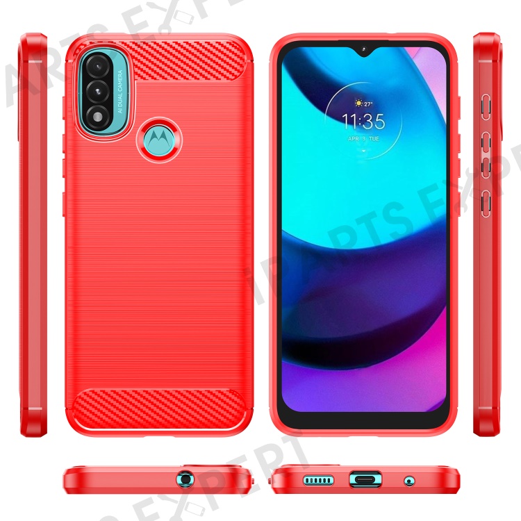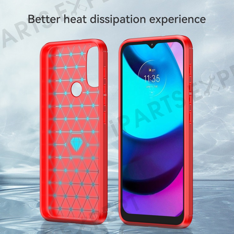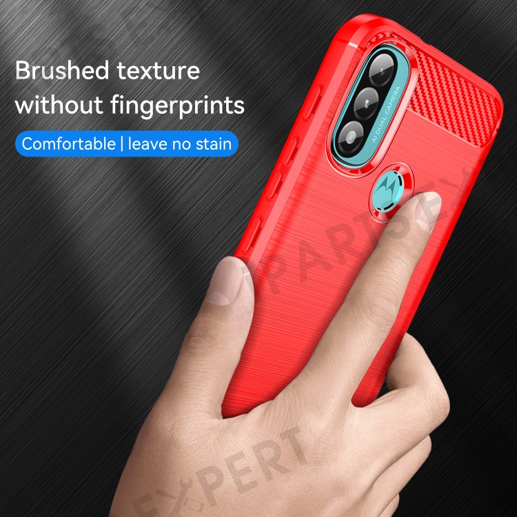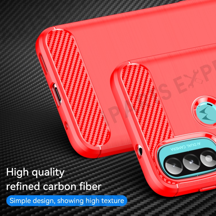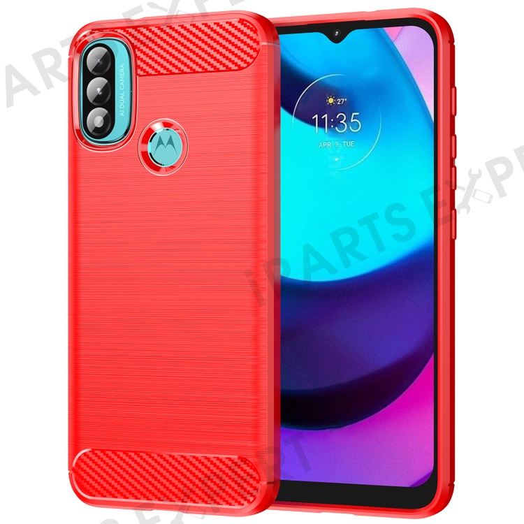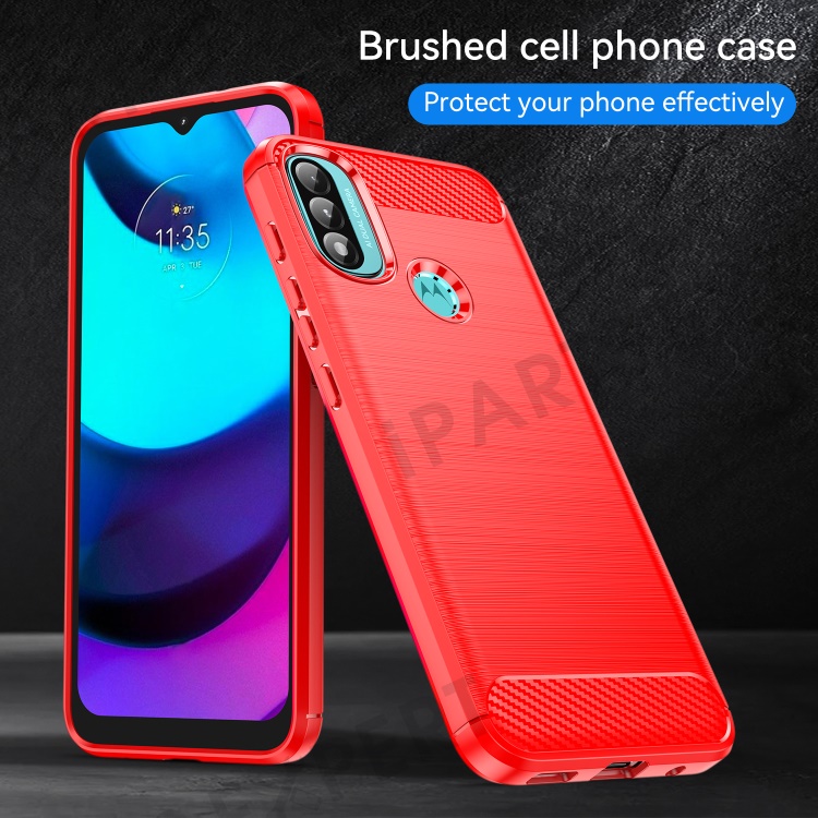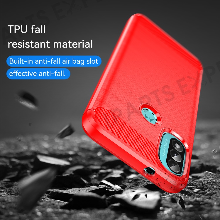 1.8mm Carbon Fiber Texture Brushed Surface TPU Case Air Bag Buffering Super Flexible Phone Cover for Motorola Moto E40/E30/E20 - Red