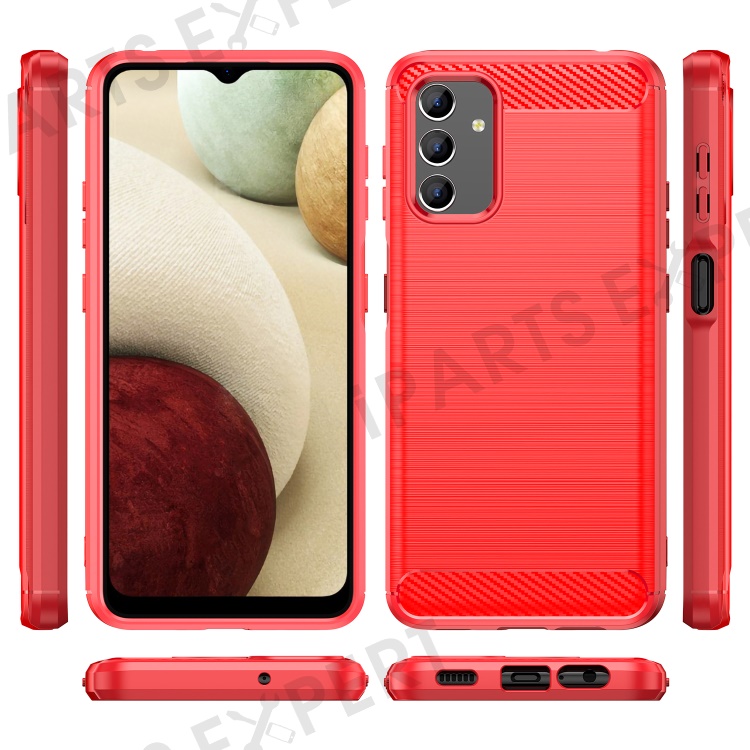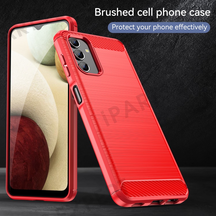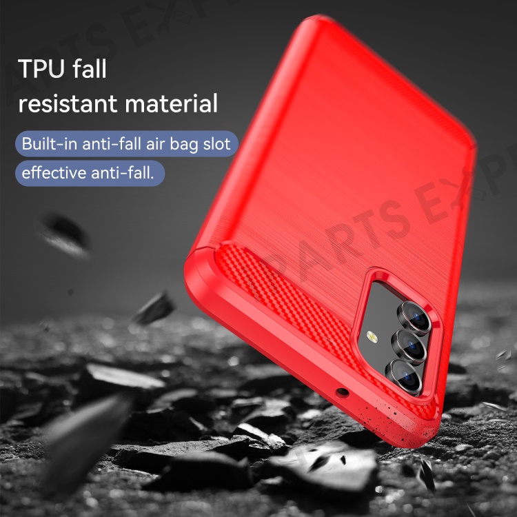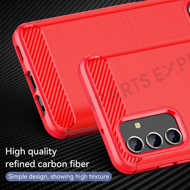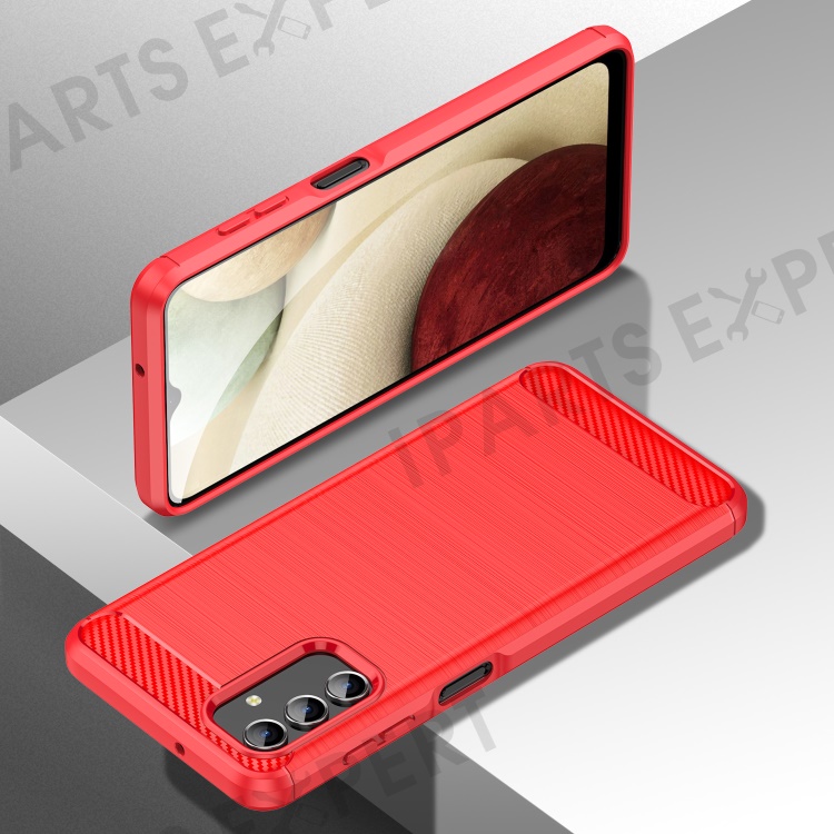 For Samsung Galaxy A13 4G / 5G / A04s 4G (164.7mm) Carbon Fiber Texture TPU Case Brushed Surface Phone Protective Cover - Red