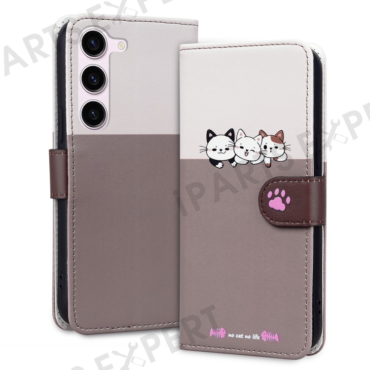 Cartoon Pet Series for Samsung Galaxy S23 FE Shockproof Case Wallet Card Holder Phone Cover - Bean Pink