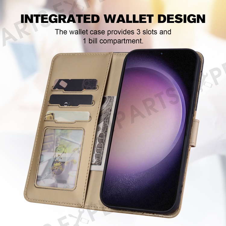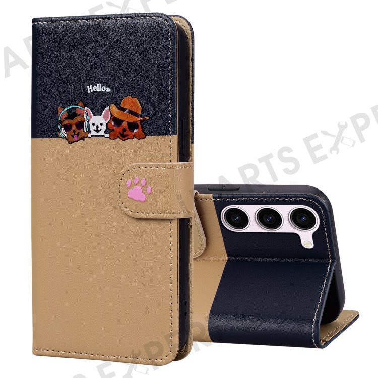 Cartoon Pet Series for Samsung Galaxy S23 FE Shockproof Case Wallet Card Holder Phone Cover - Khaki