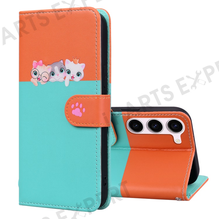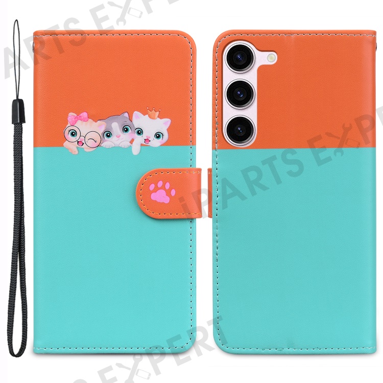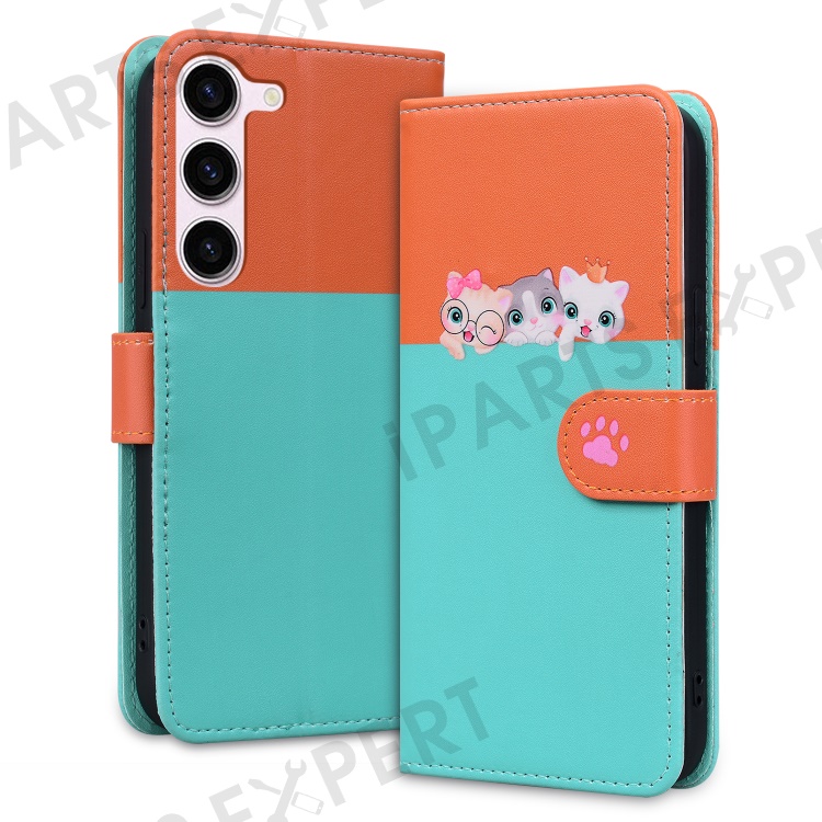 Cartoon Pet Series for Samsung Galaxy S23 FE Shockproof Case Wallet Card Holder Phone Cover - Sky Blue