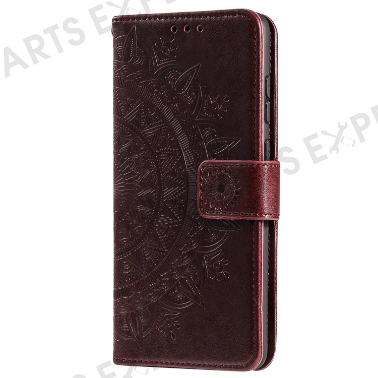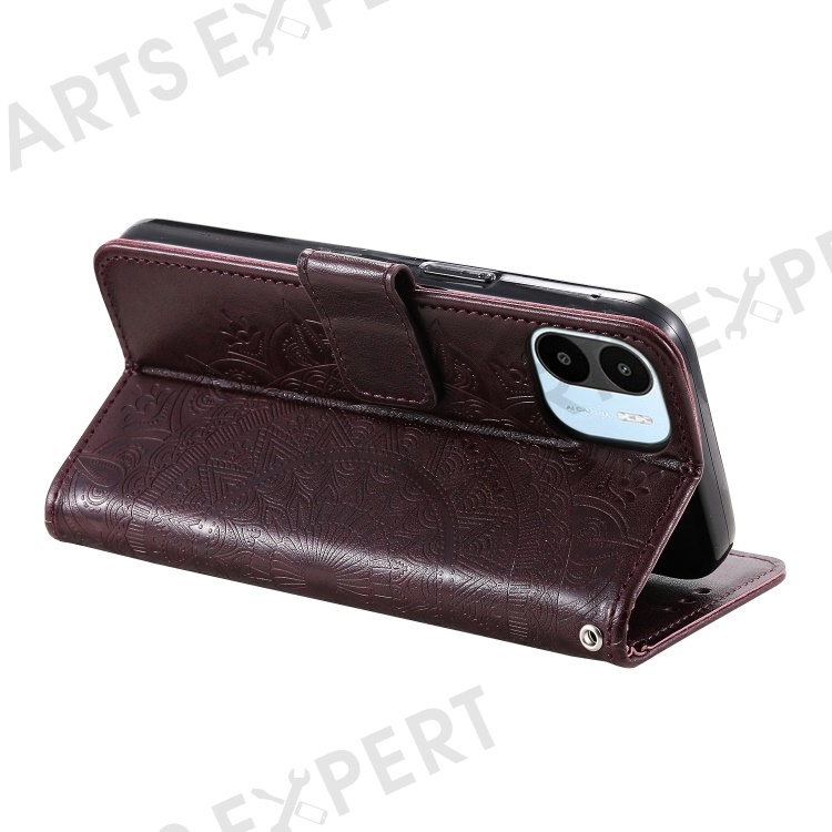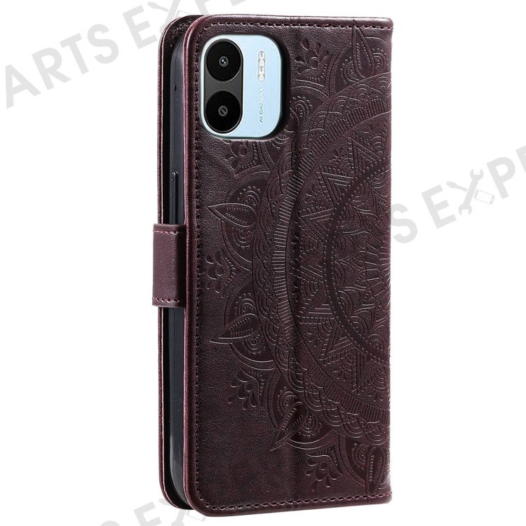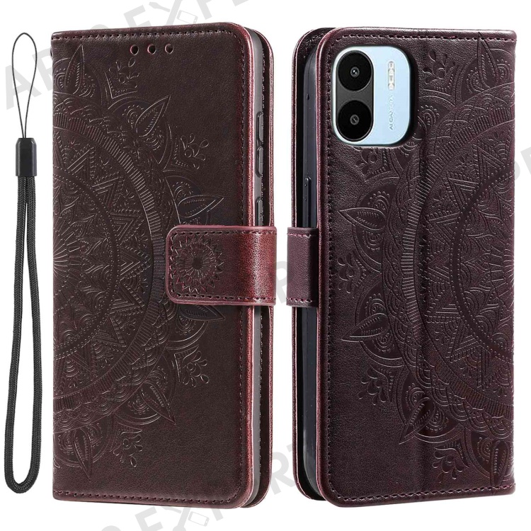 Cell Phone Cover For Xiaomi Redmi A1 4G, Mandala Flower Pattern Imprinted PU Leather Flip Wallet Case Stand Phone Shell - Brown