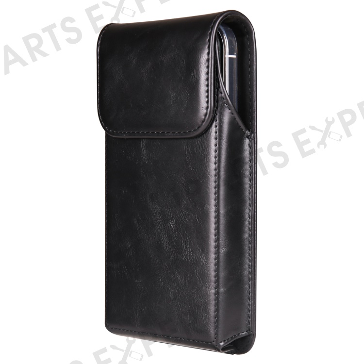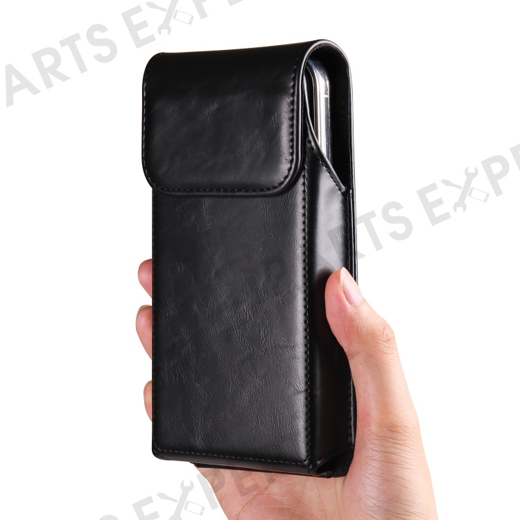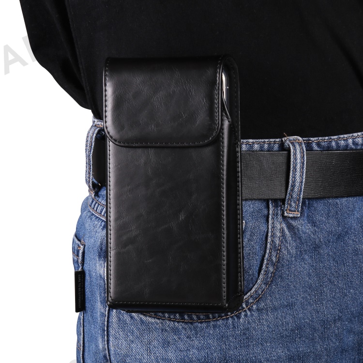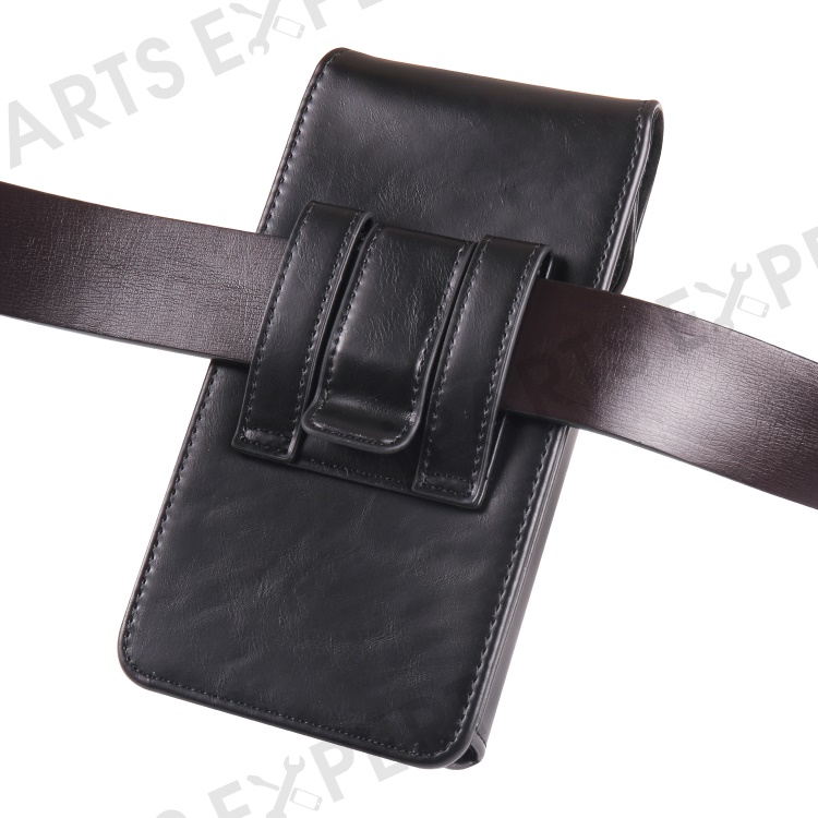 Crazy Horse Texture PU Leather Wasit Phone Bag for 6.1" Cell Phone Universal Belt Pouch with Back Clip - Black