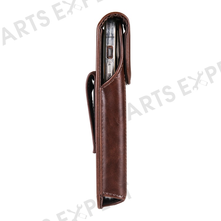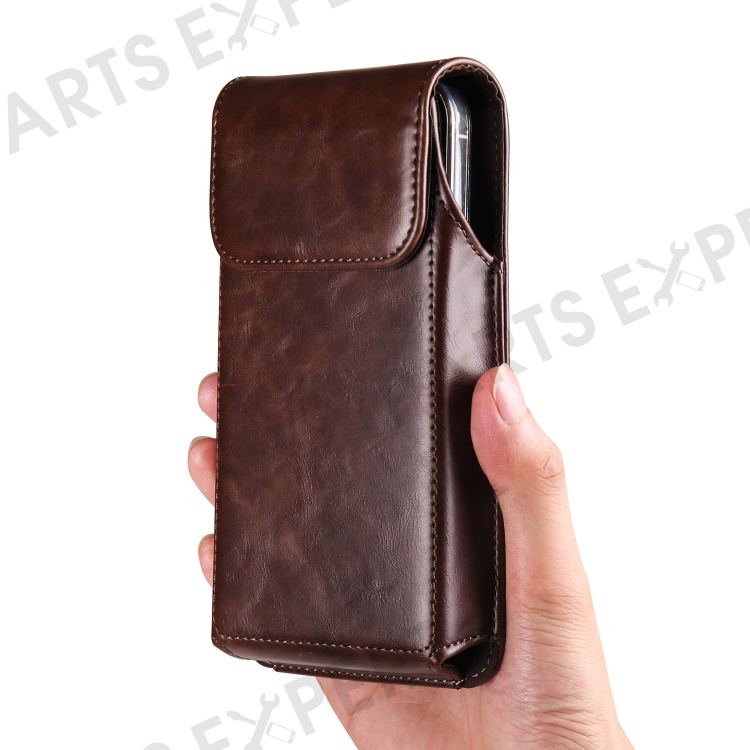Crazy Horse Texture PU Leather Wasit Phone Bag for 6.1" Cell Phone Universal Belt Pouch with Back Clip - Coffee