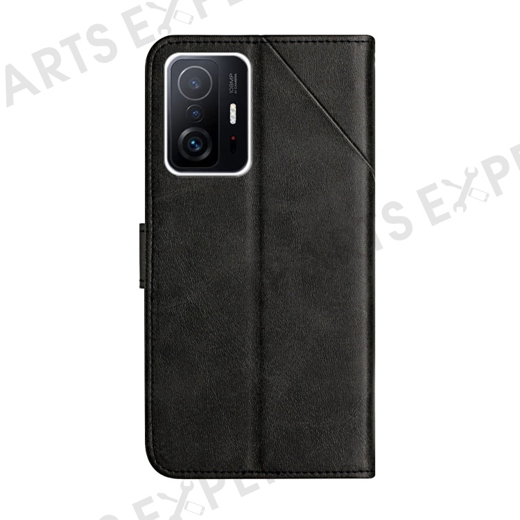 Cross Stripe Design Leather Solid Color Magnetic Clasp Wallet Stand Phone Shell Case for Xiaomi 11T / 11T Pro - Black