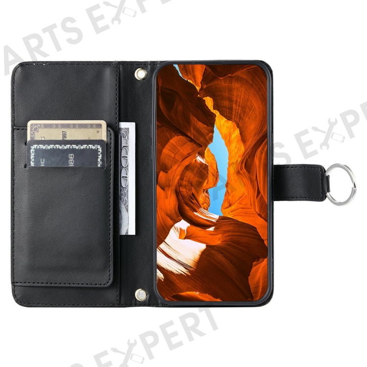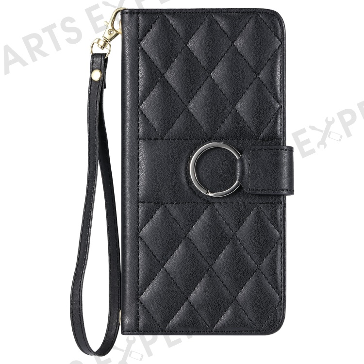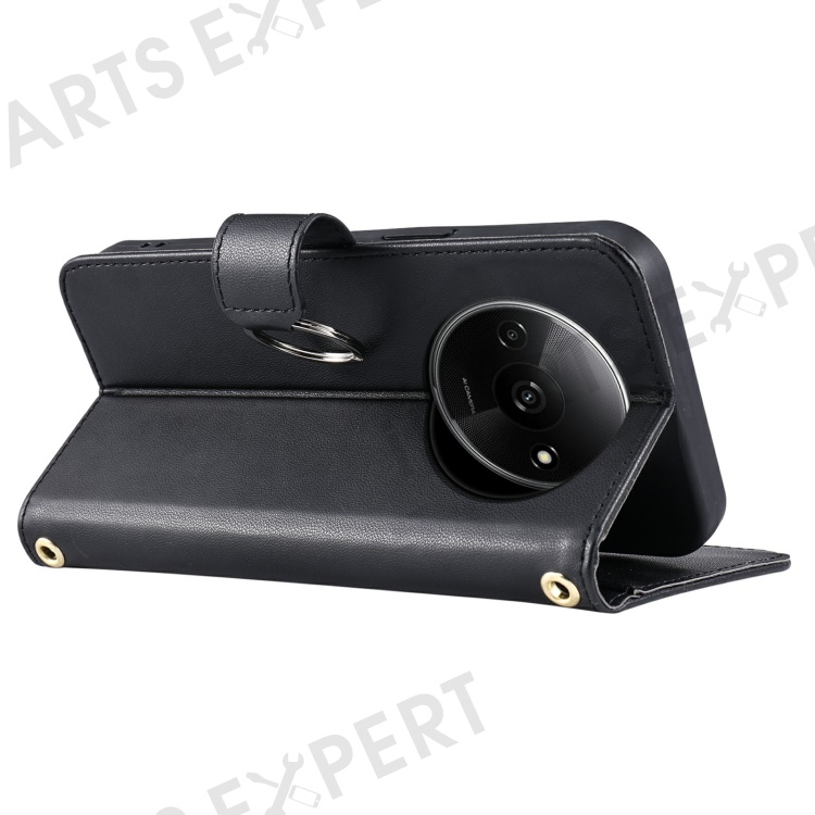 Crossbody Leather Case for Xiaomi Redmi A3x 4G / Redmi A3 4G / Poco C61 4G Wallet Stand Rhombus Mobile Cover - Black
