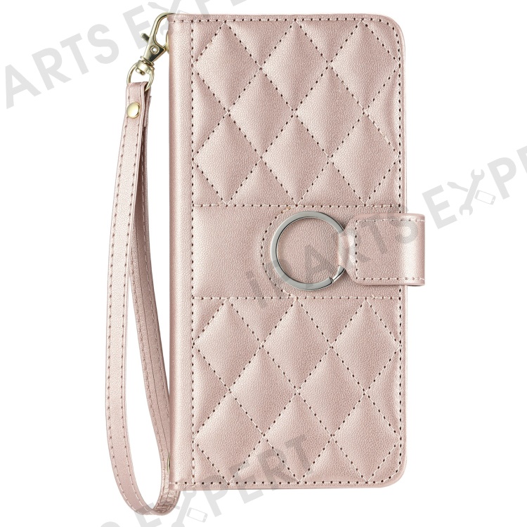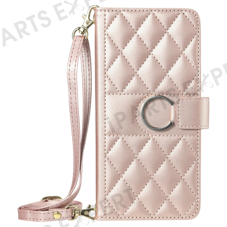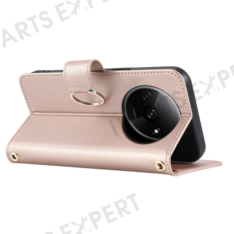 Crossbody Leather Case for Xiaomi Redmi A3x 4G / Redmi A3 4G / Poco C61 4G Wallet Stand Rhombus Mobile Cover - Rose Gold