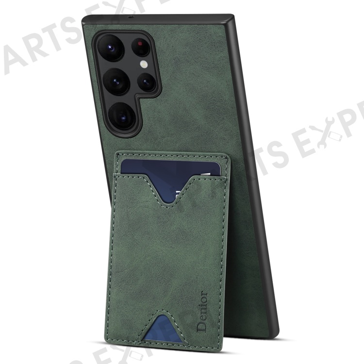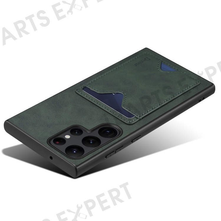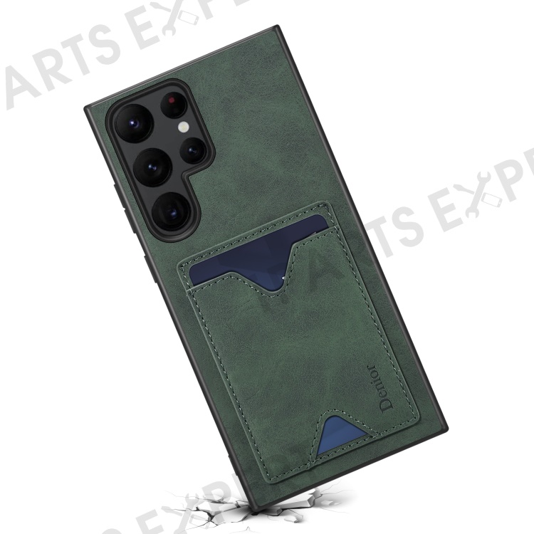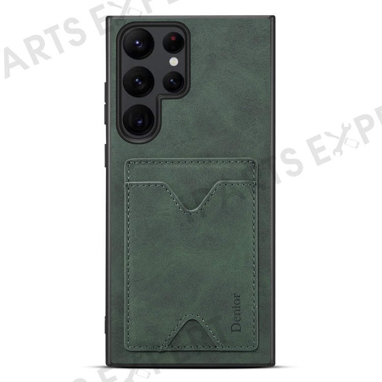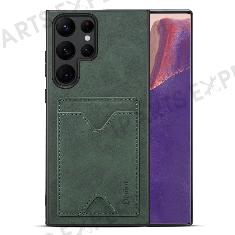 DENIOR Anti-fall Phone Case For Samsung Galaxy S23 Ultra PU Leather Coated TPU Case Kickstand Card Slot Phone Cover - Green