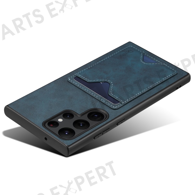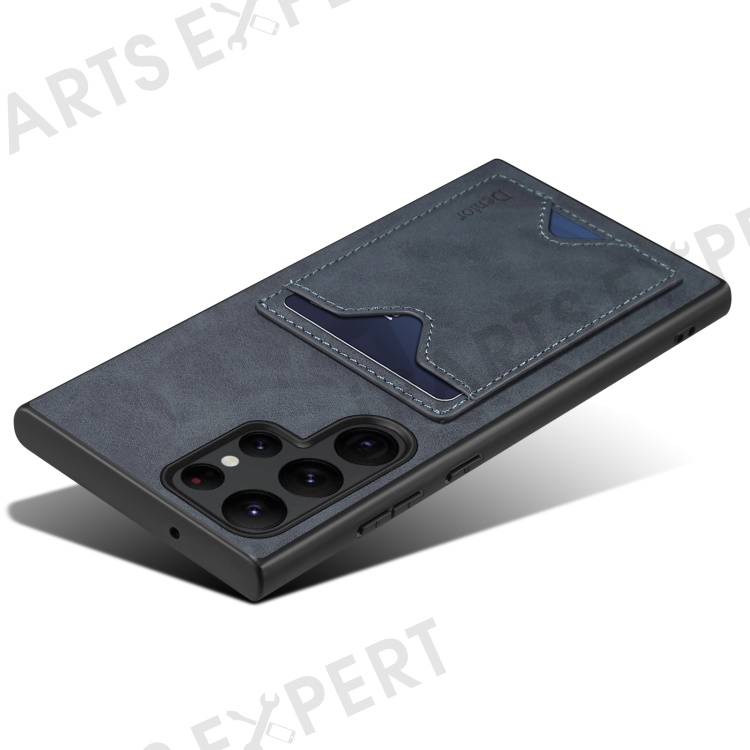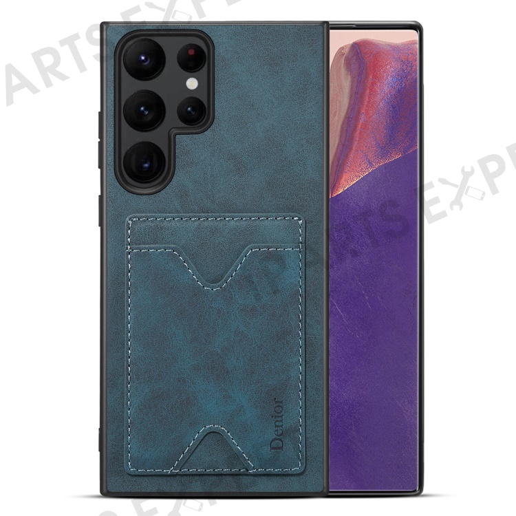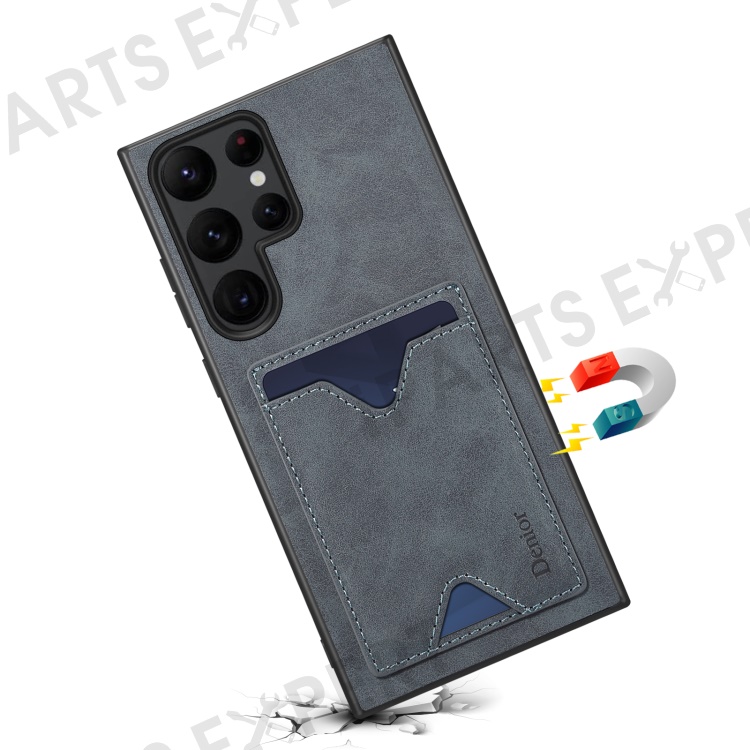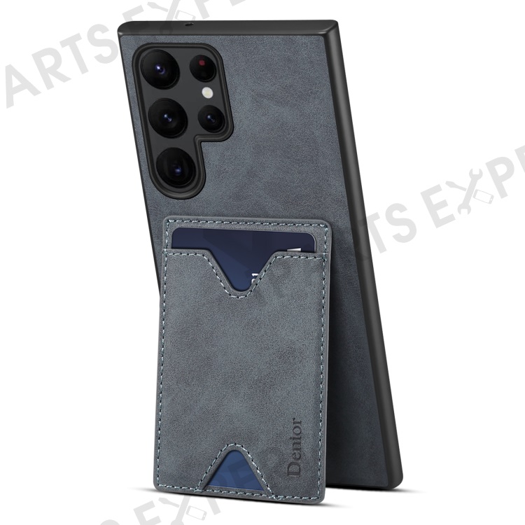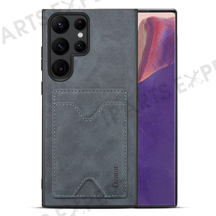 DENIOR Anti-fall Phone Case For Samsung Galaxy S23 Ultra PU Leather Coated TPU Case Kickstand Card Slot Phone Cover - Grey