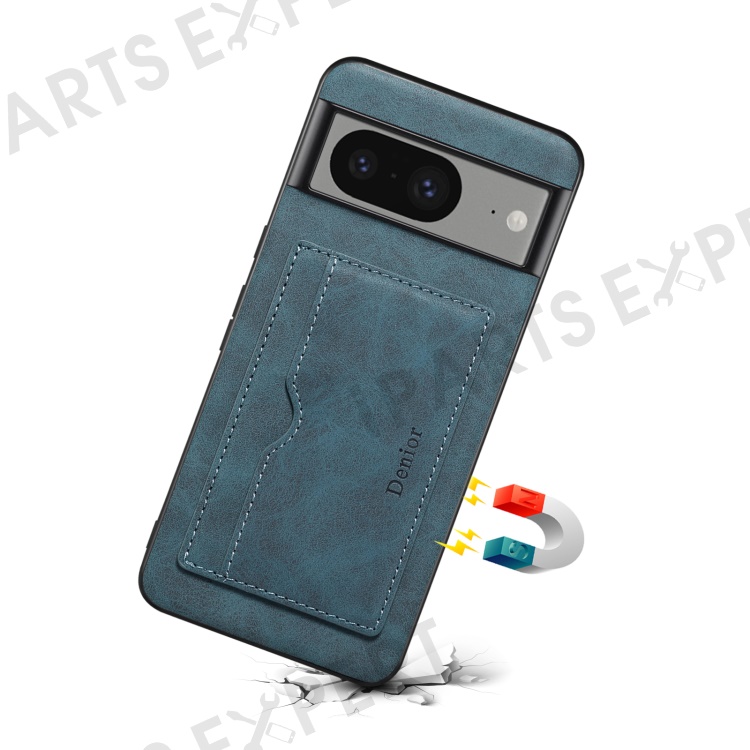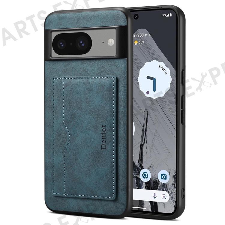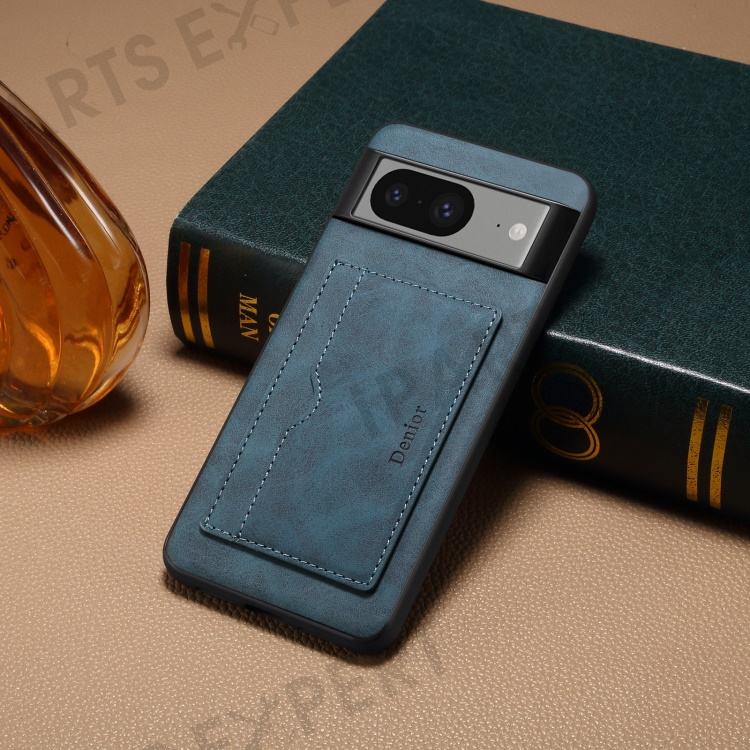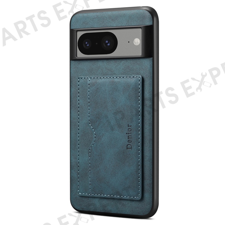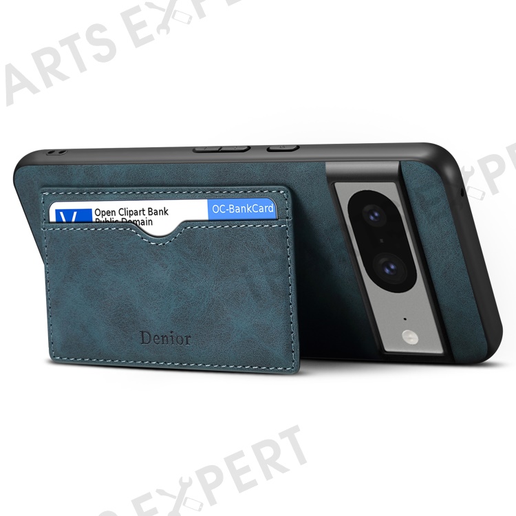 DENIOR For Google Pixel 8 Case Retro Leather+TPU+PC Card Holder Phone Cover - Blue