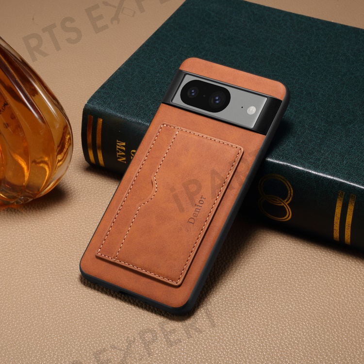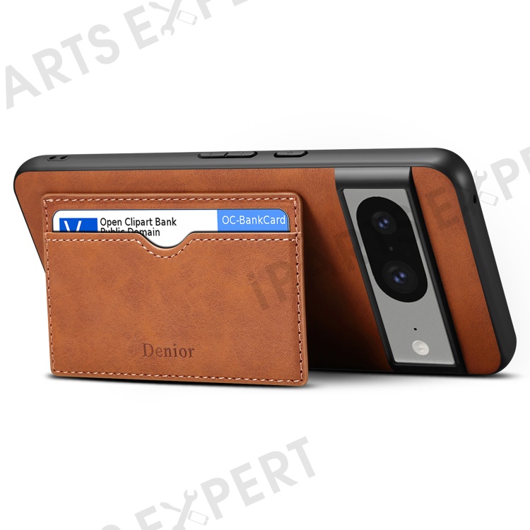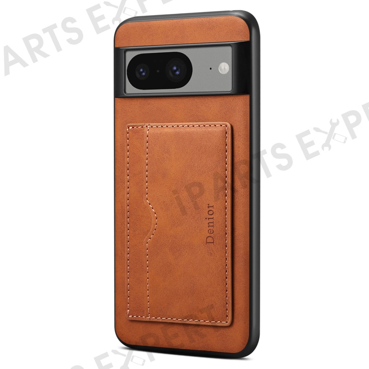 DENIOR For Google Pixel 8 Case Retro Leather+TPU+PC Card Holder Phone Cover - Brown