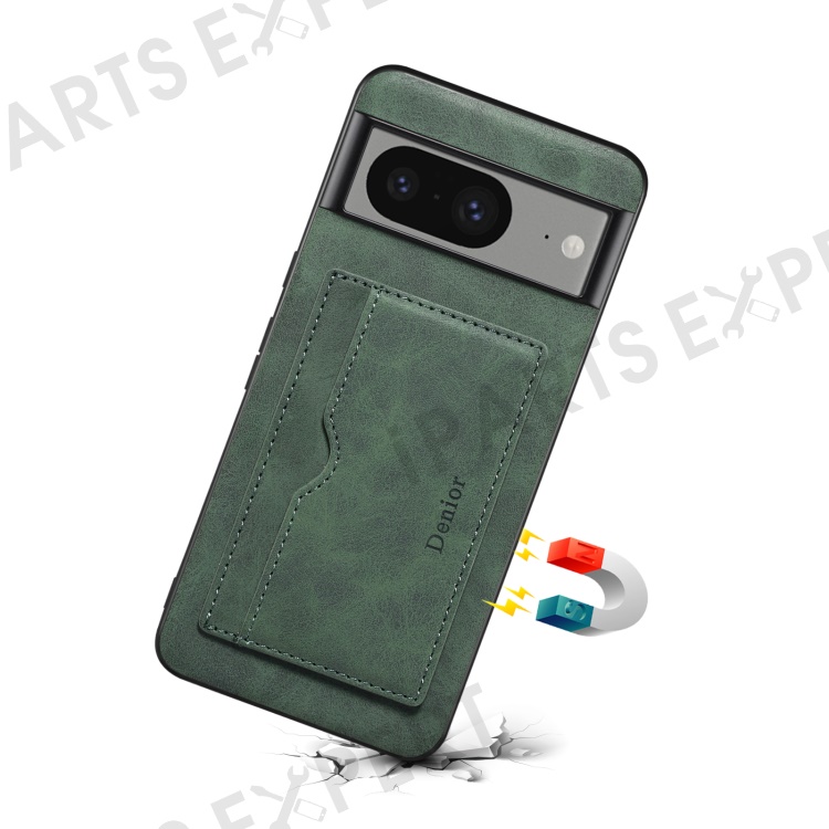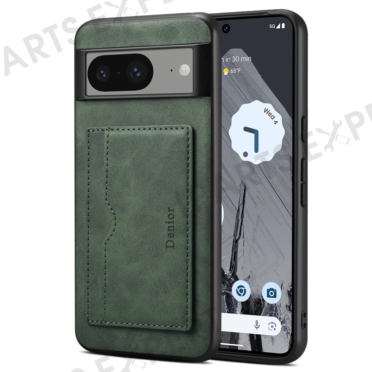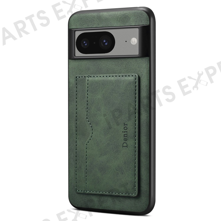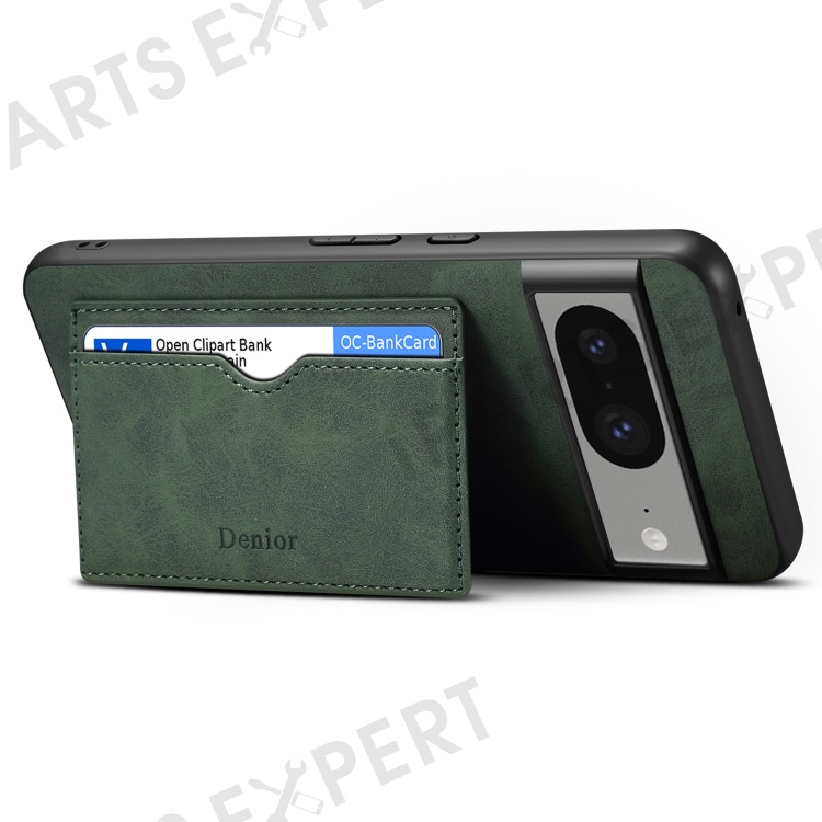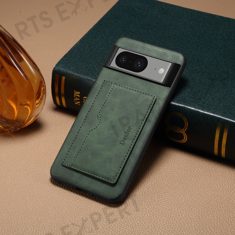DENIOR For Google Pixel 8 Case Retro Leather+TPU+PC Card Holder Phone Cover - Green