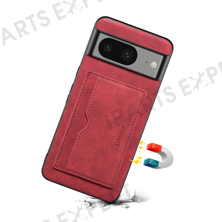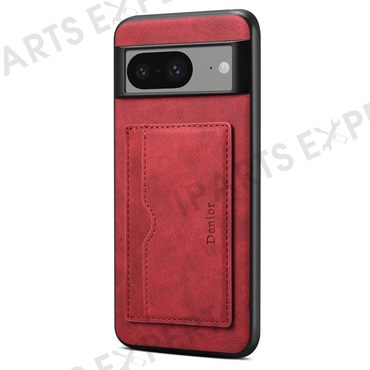 DENIOR For Google Pixel 8 Case Retro Leather+TPU+PC Card Holder Phone Cover - Red