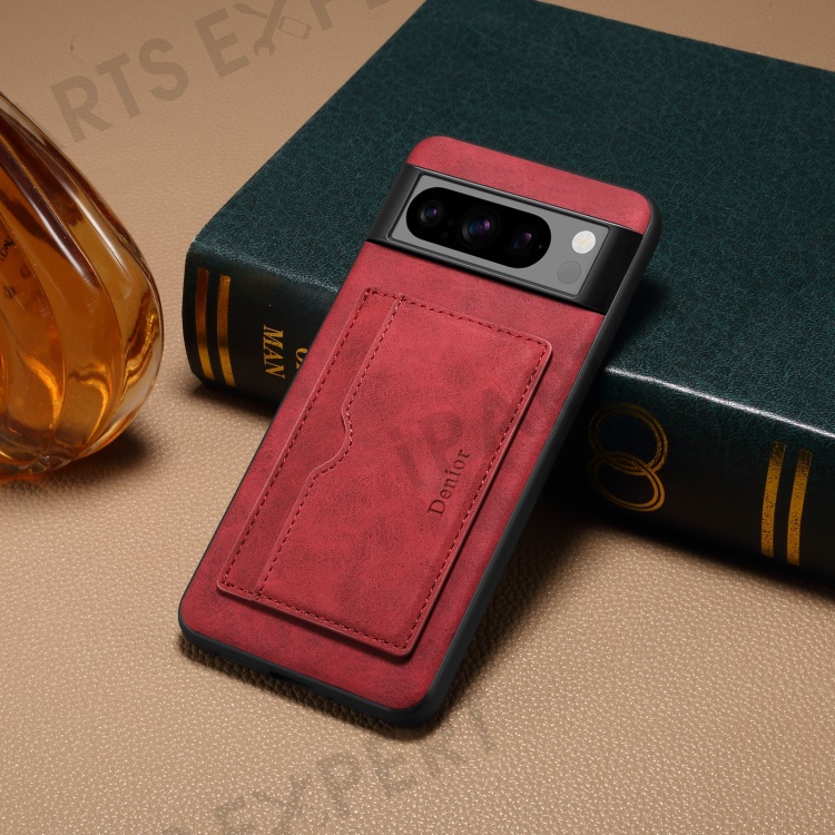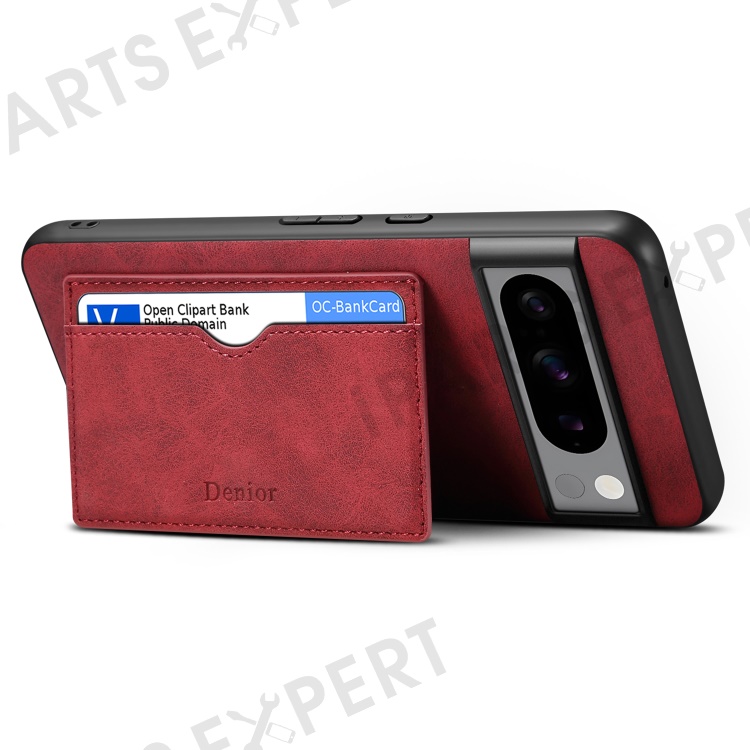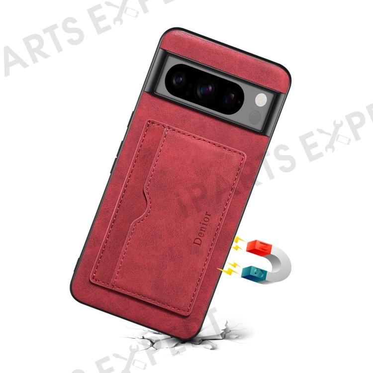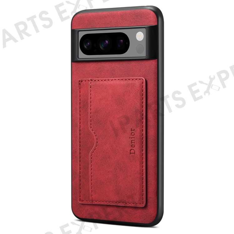 DENIOR For Google Pixel 8 Pro Case Leather+TPU+PC Kickstand Protective Cover - Red