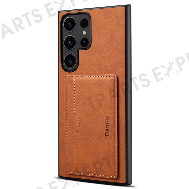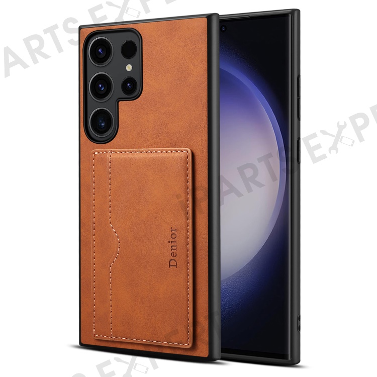 DENIOR For Samsung Galaxy S23 Ultra Magnetic Case Retro Card Holder Kickstand Back Shell - Brown