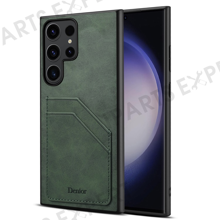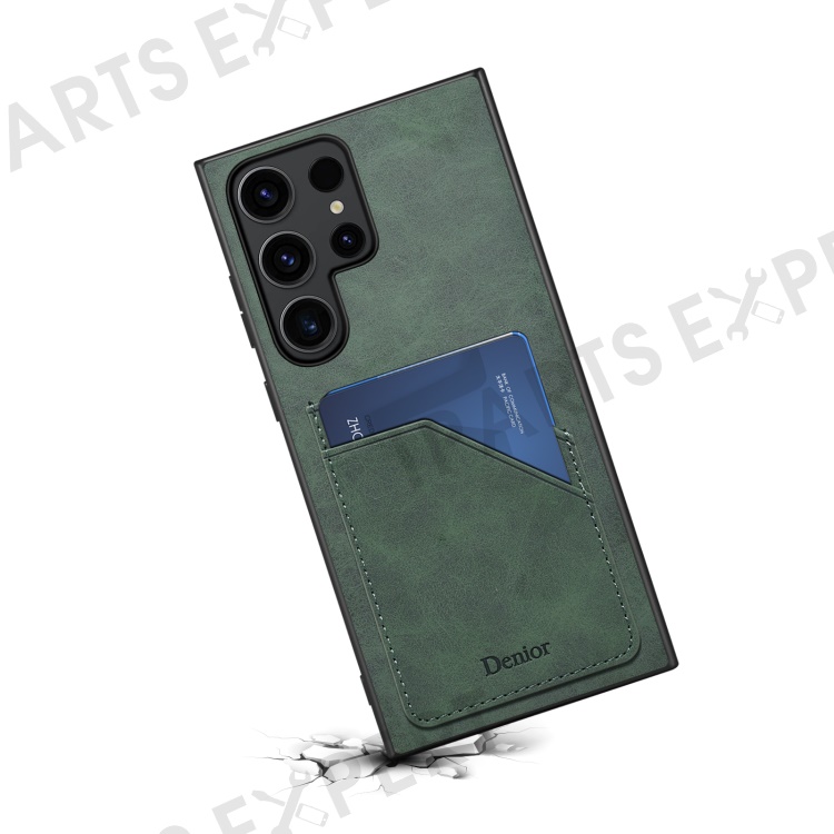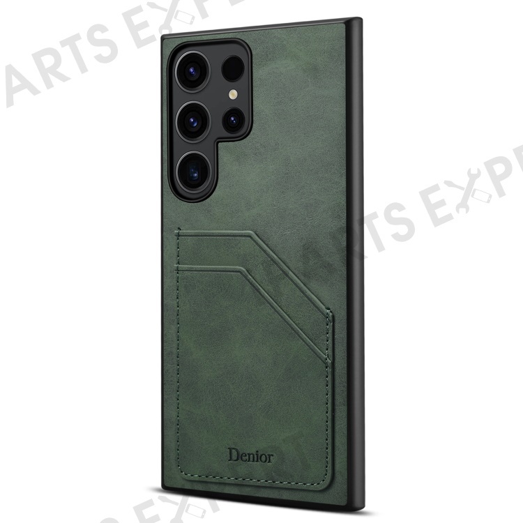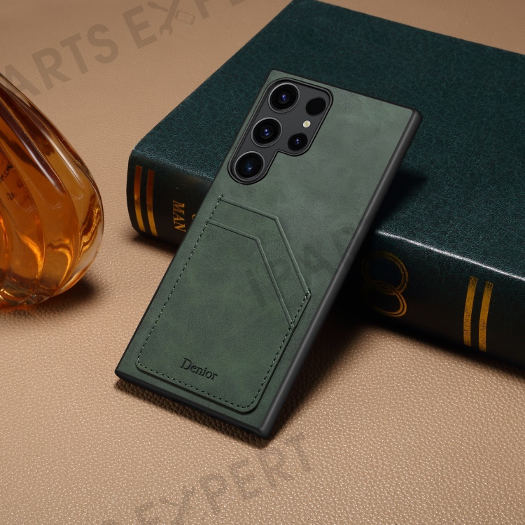 DENIOR For Samsung Galaxy S24 Ultra Case Retro Style 2 Card Holders Phone Back Cover - Green