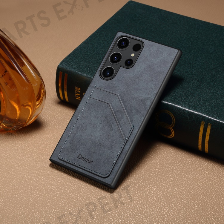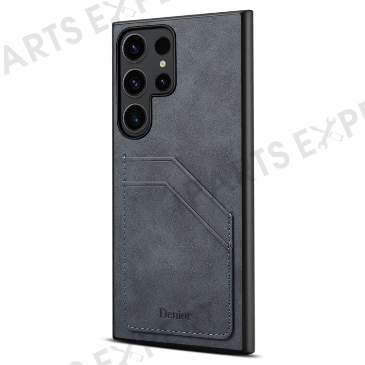 DENIOR For Samsung Galaxy S24 Ultra Case Retro Style 2 Card Holders Phone Back Cover - Grey