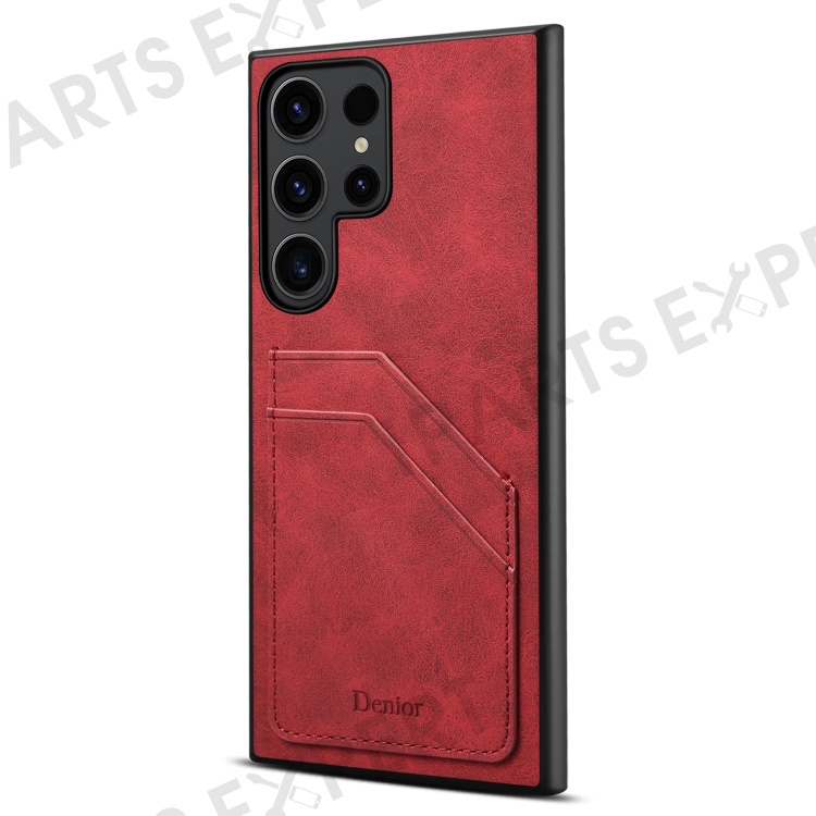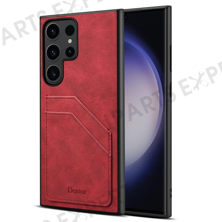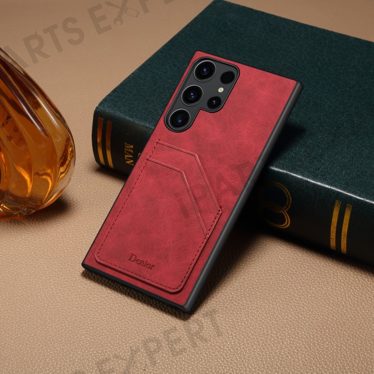 DENIOR For Samsung Galaxy S24 Ultra Case Retro Style 2 Card Holders Phone Back Cover - Red