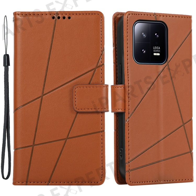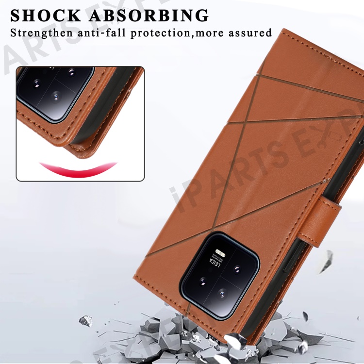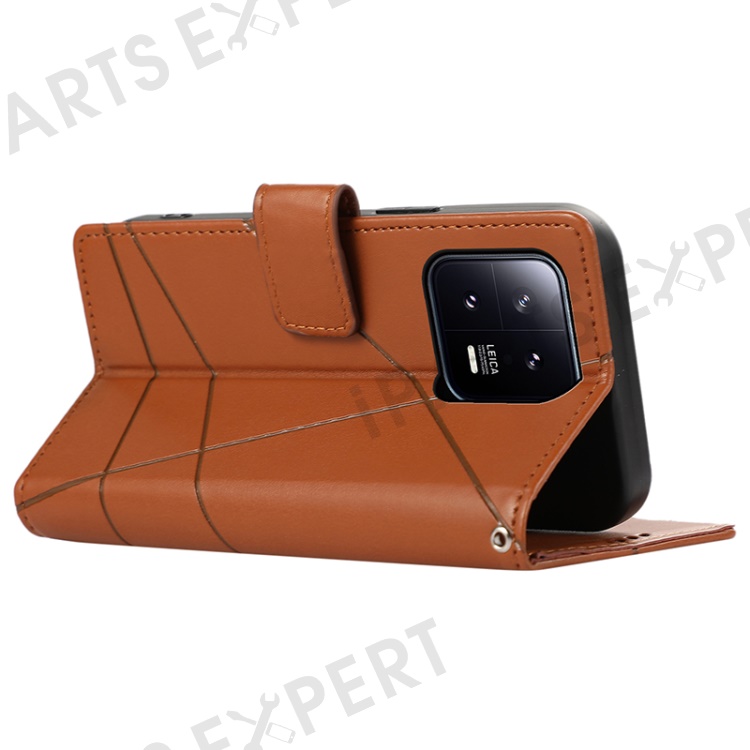 DF-06 For Xiaomi 13 Case Anti-drop Imprinted Wallet Stand PU Leather Phone Cover - Brown