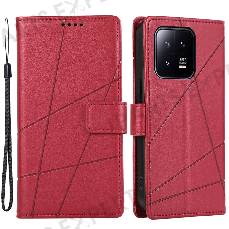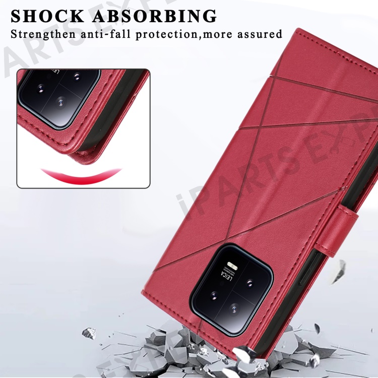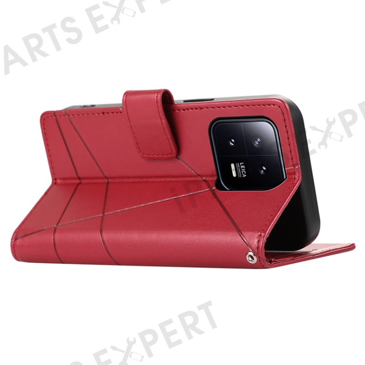 DF-06 For Xiaomi 13 Case Anti-drop Imprinted Wallet Stand PU Leather Phone Cover - Red