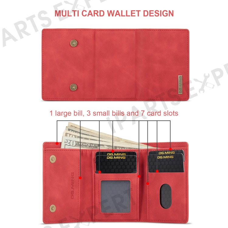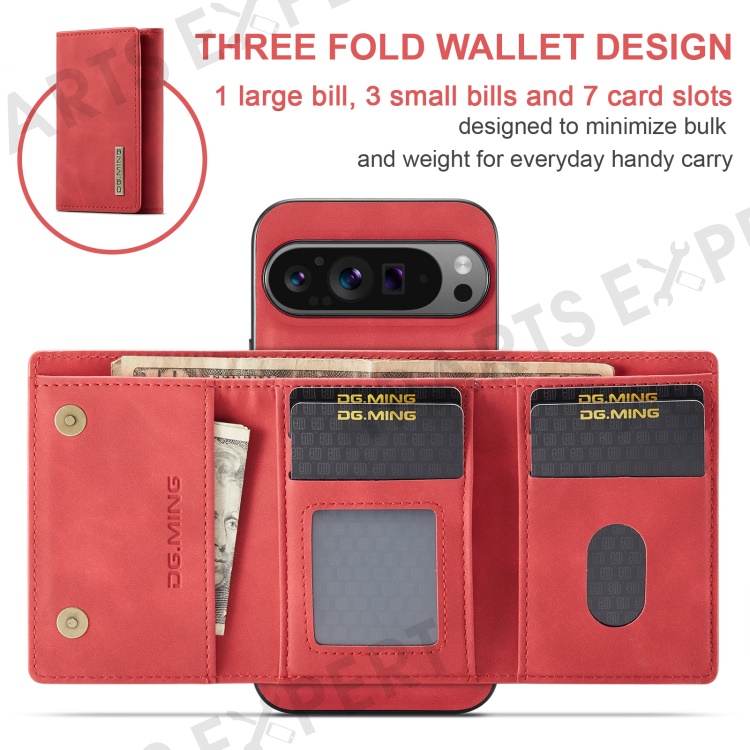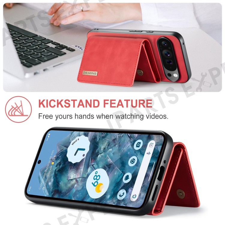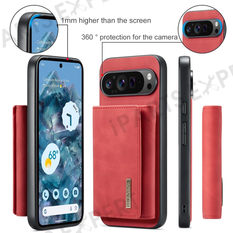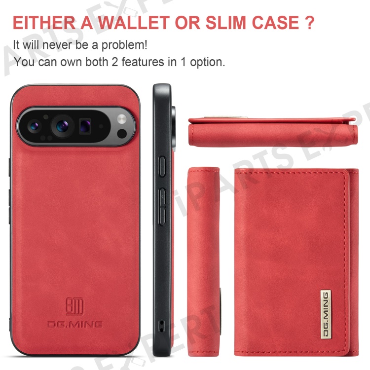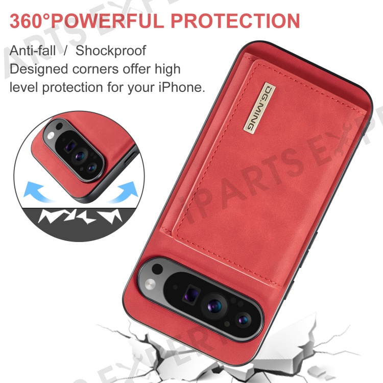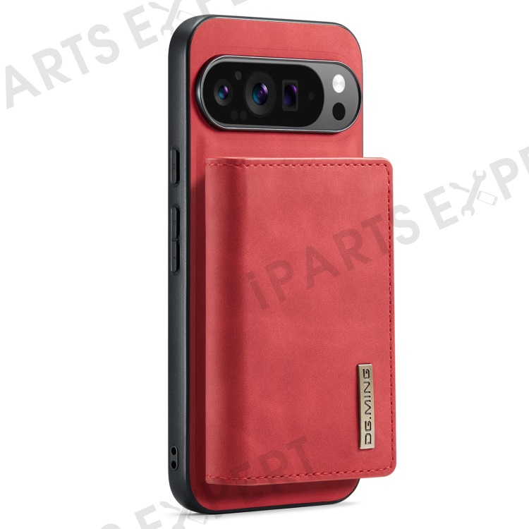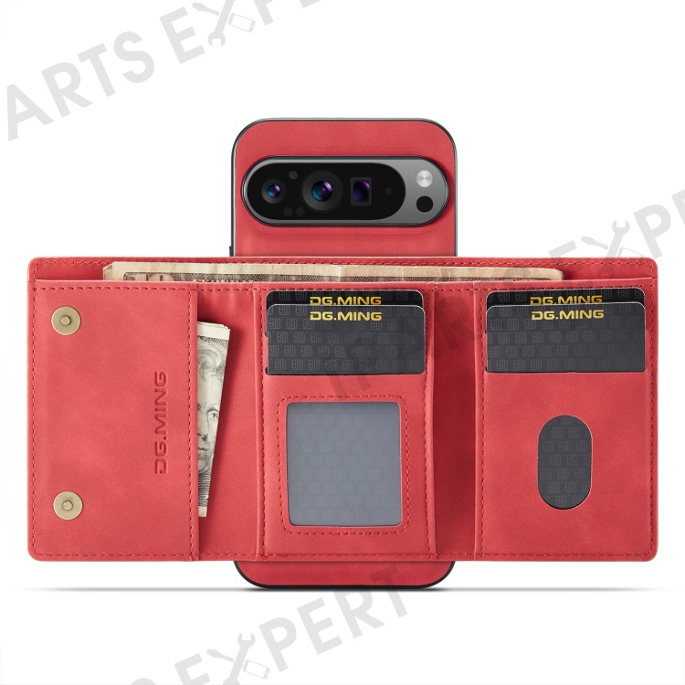 DG.MING M1 Series for Google Pixel 9 Pro XL Case Kickstand PU Phone Cover with Detachable Wallet - Red