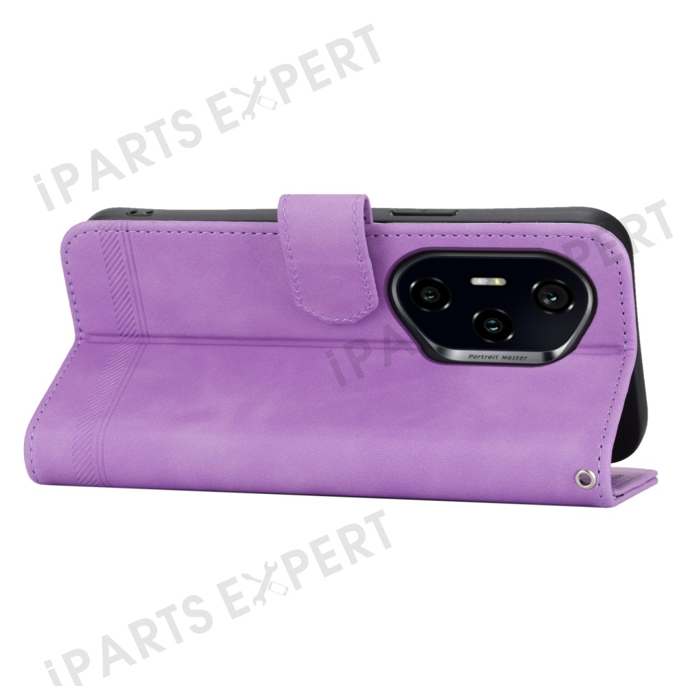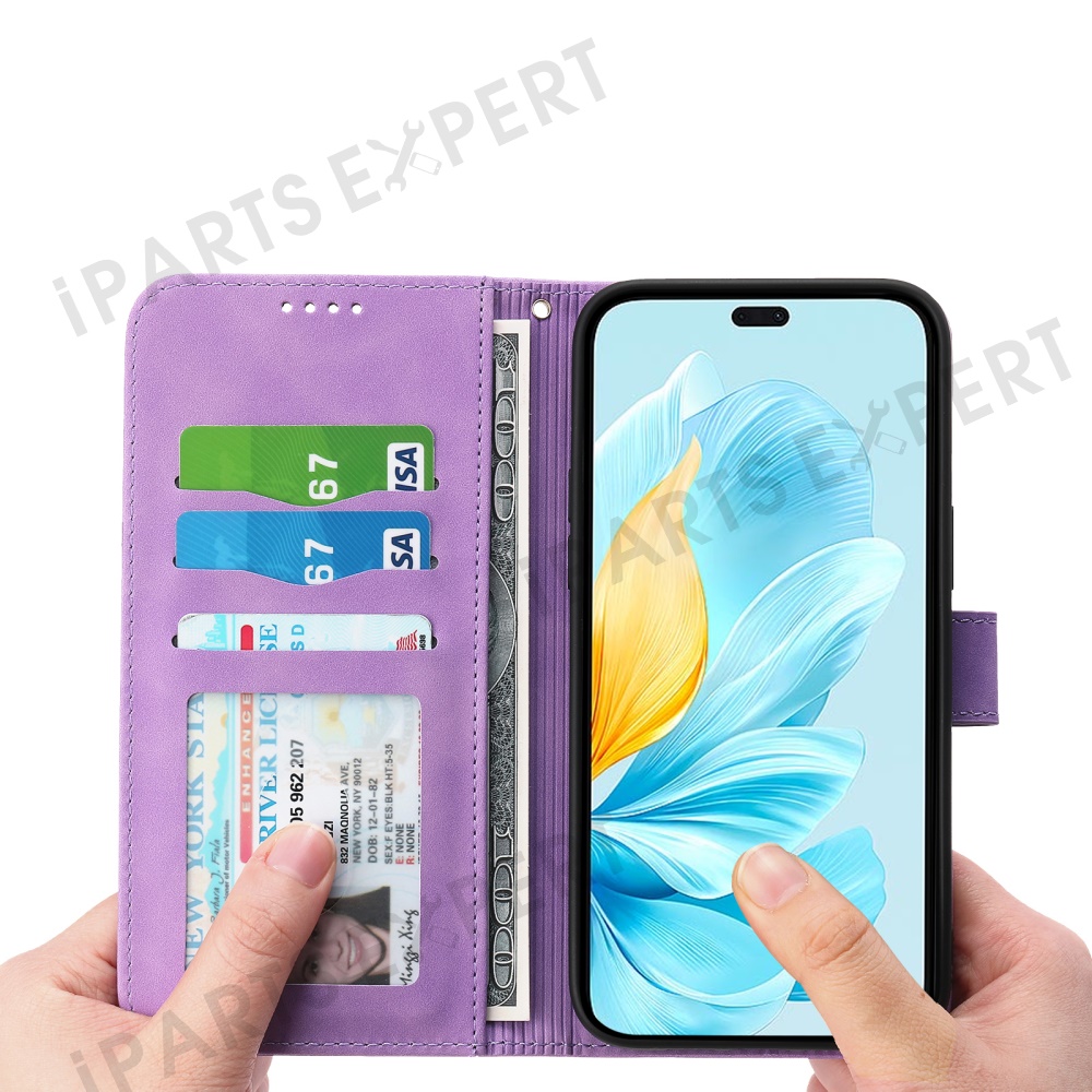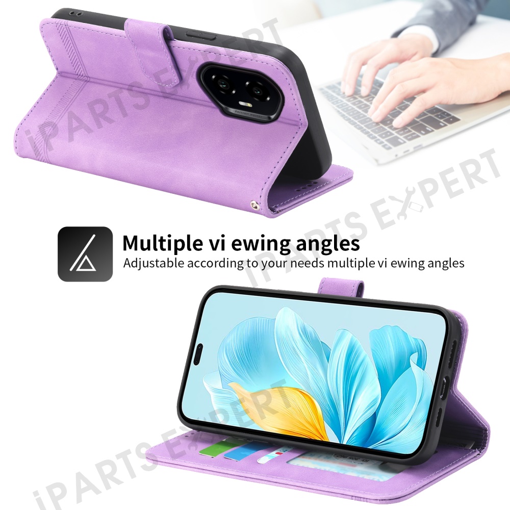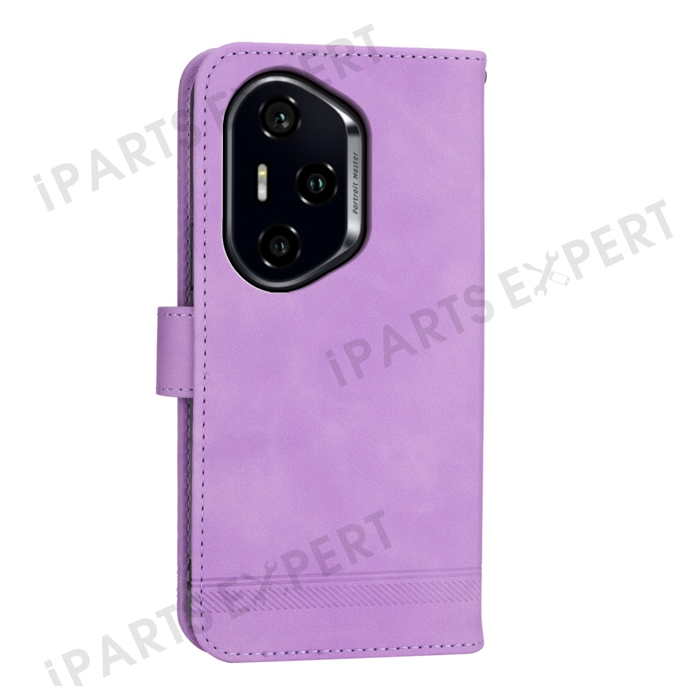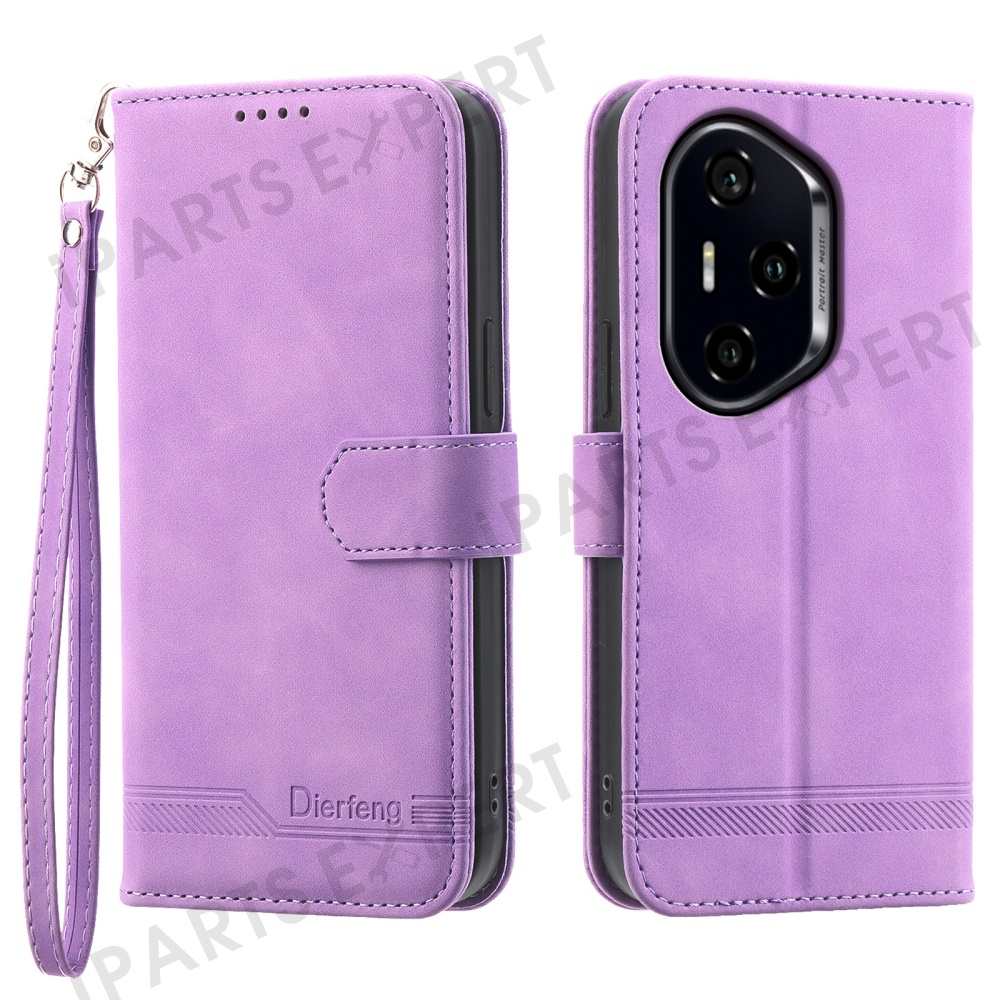 DIERFENG DF-03 For Honor 300 Pro / 300 Ultra Leather Case Lines Imprint Wallet Phone Cover - Purple